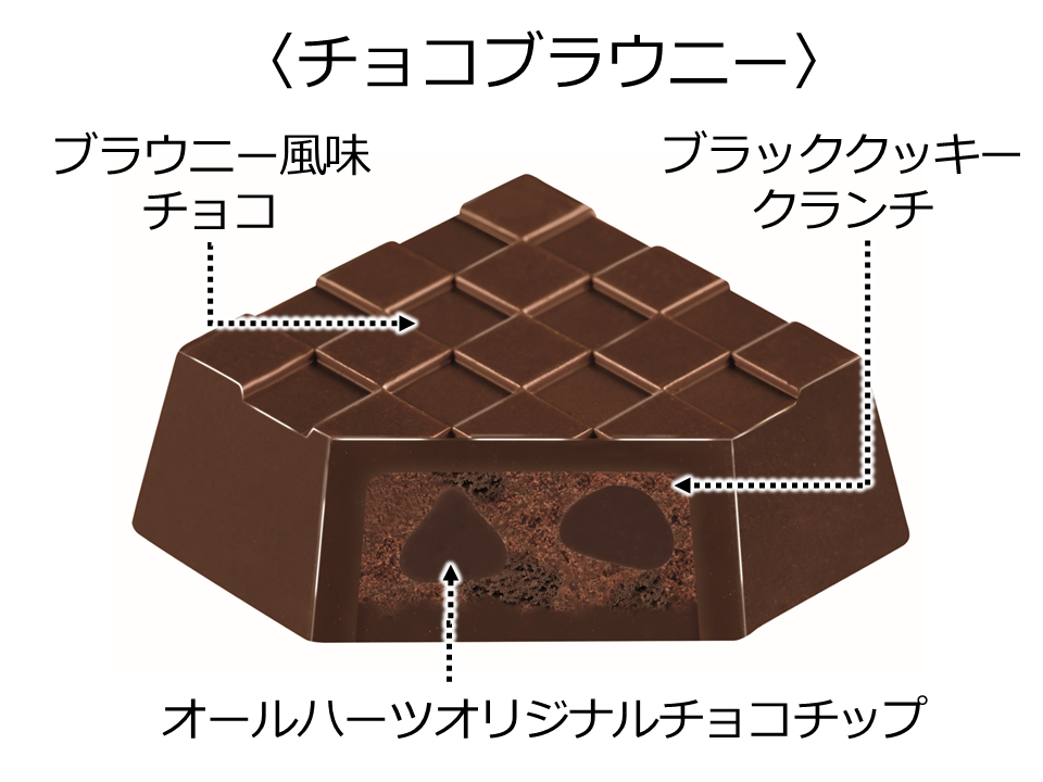 オールハーツオリジナルのチョコチップとブラッククランチクッキーをブラウニー風味チョコで包み、濃厚で本格的なブラウニーを再現。