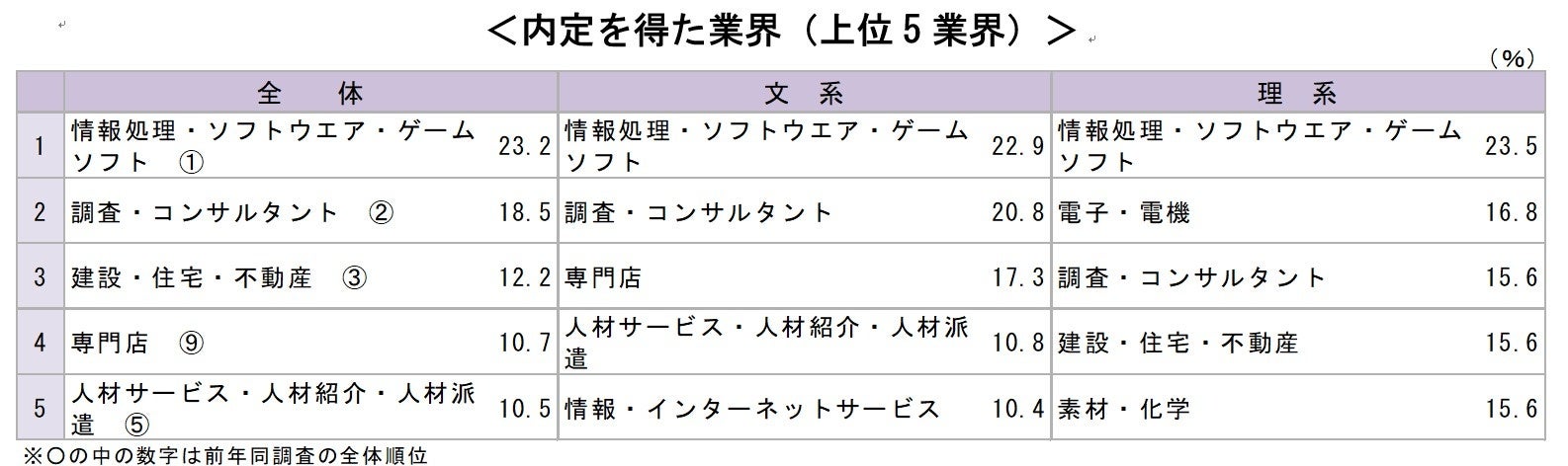 ○志望業界1位「インターネットサービス」、2位「情報処理・ソフトウエア」。IT人気続く