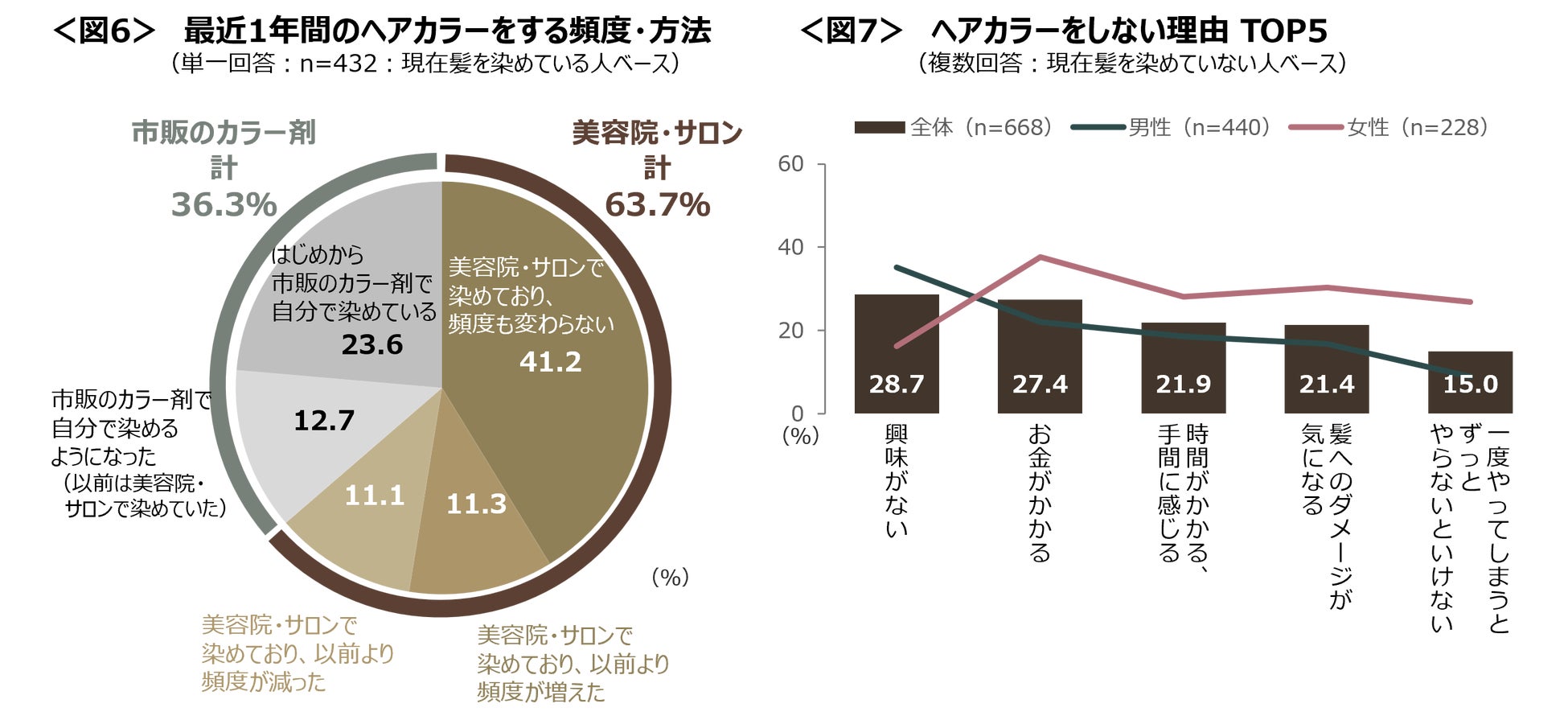 男性は興味がないこと、女性はお金・手間・ダメージなどが、ヘアカラーをしない主な要因になっている。<図7>