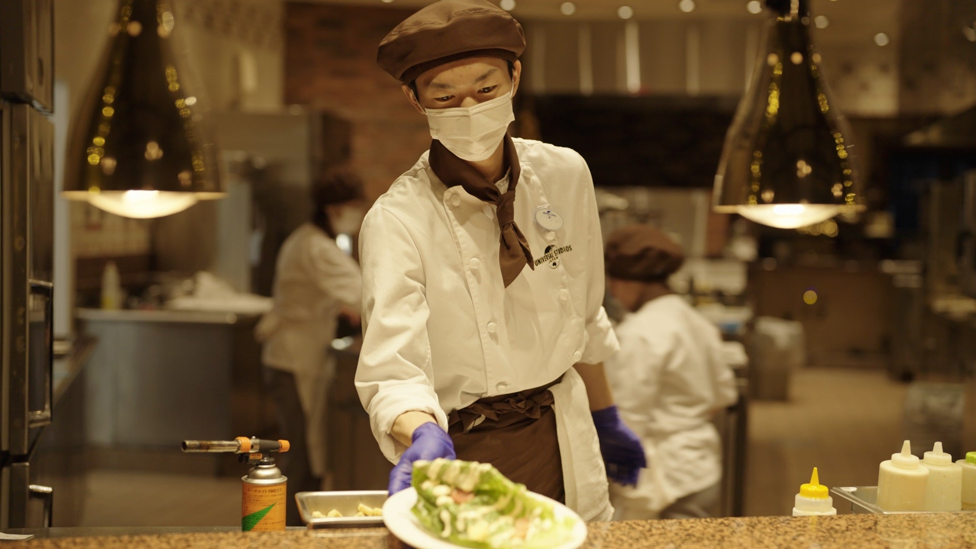 パークのオリジナル料理には、可愛いキャラクターが描かれたもの、ボリューム感満点のもの、季節ごとのユニークなメニューが溢れています!調理好きはもちろん、アットホームな雰囲気が好き、コツコツと作業することが好きな方にぴったりです!料理を前にしたときのゲストの笑顔を想像しながら、仕込みや盛り付けなどの調理をするのもキッチンクルーの楽しみのひとつです。