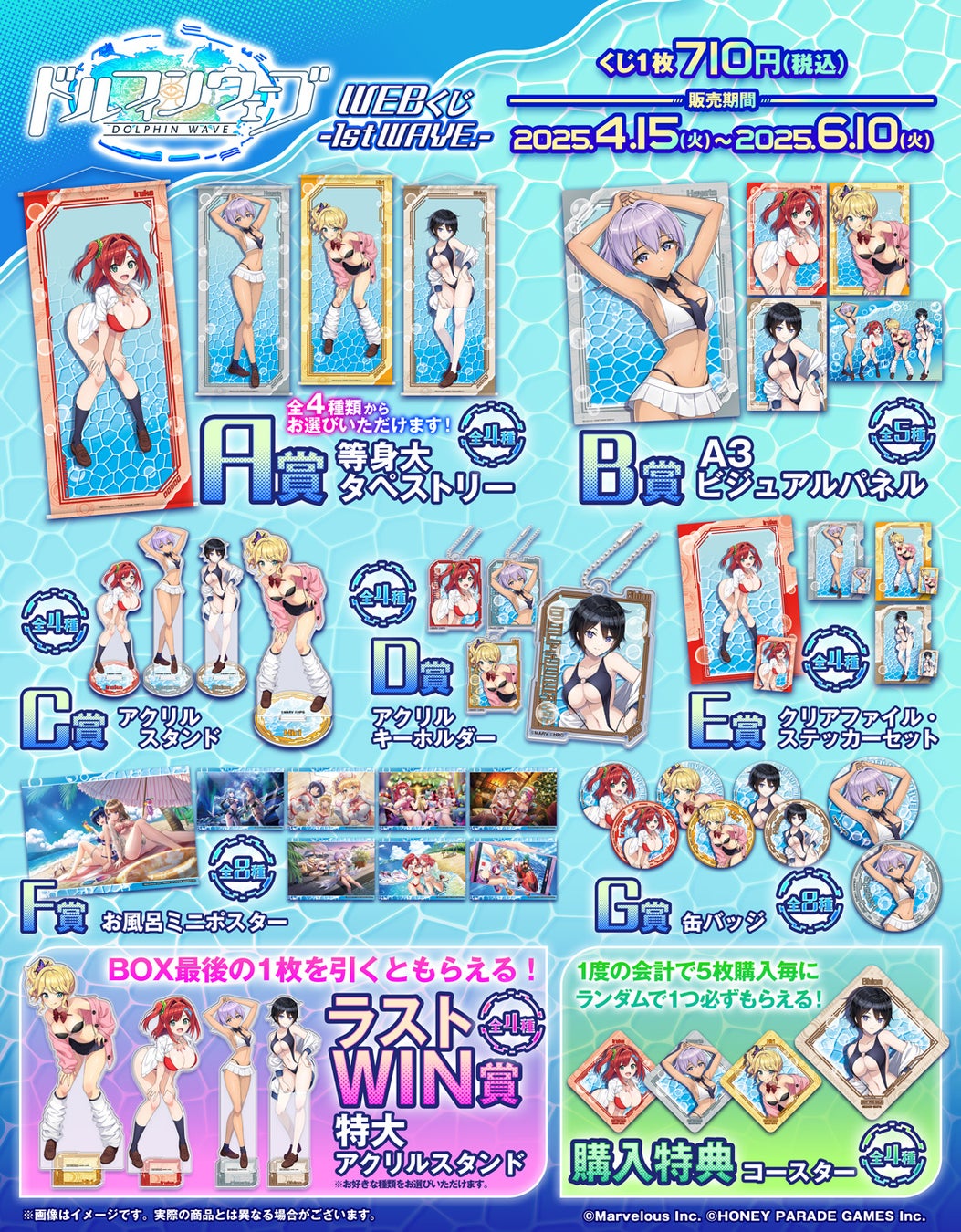 描き下ろしイラストを使用した限定グッズが当たる『ドルフィンウェーブWEBくじ-1st WAVE.-』販売開始!