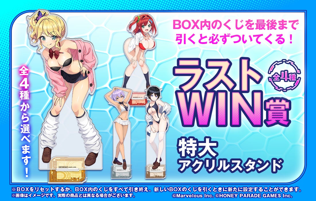 また、ラストWIN賞では通常賞品よりもさらに大きい、約30cmの特大アクリルスタンドがラインナップ。