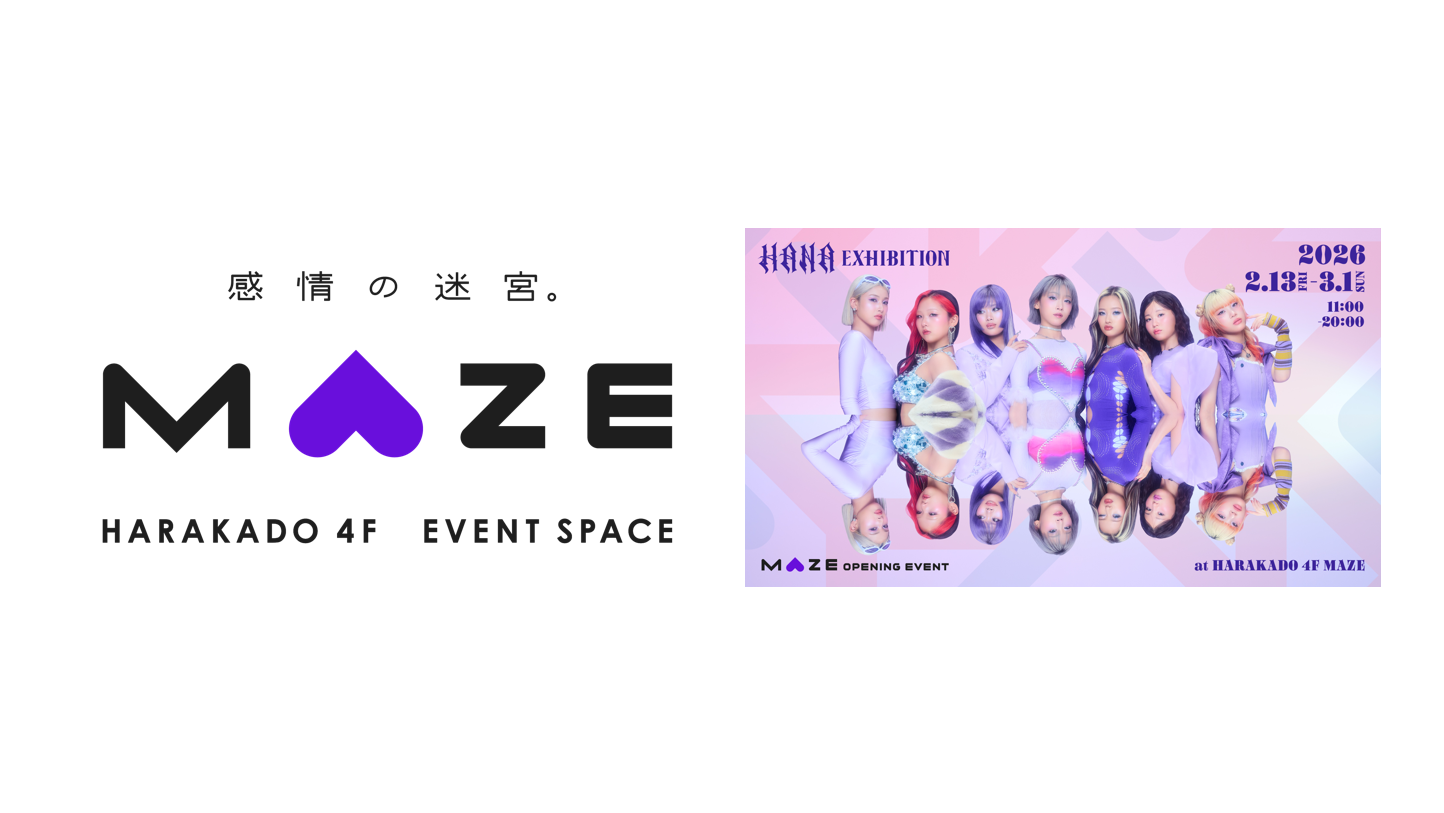 東急不動産株式会社(本社:東京都渋谷区、代表取締役社長:星野 浩明、以下「当社」)は、東急プラザ原宿「ハラカド」(東京都渋谷区、以下「ハラカド」)の4階に、新イベントスペース「MAZE(メイズ)」を開設することをお知らせします。また、2月13日(金)より、MAZEのオープニング企画として、ガールズグループ「HANA」とコラボレーションし、展覧会「HANA EXHIBITION」を開催します。HANAが大切にしてきた“自分らしさ”の世界観を体感できる内容です。会場では、HANAのグッズや2月25日(水)に発売されるアルバムの販売も予定しています。
