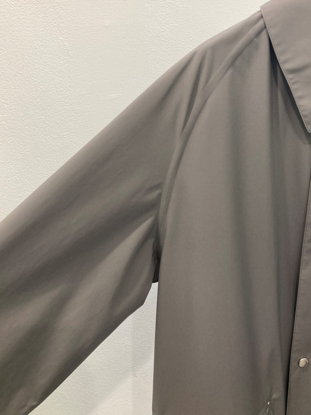 適度なハリ感と、上質な色み・風合いが特徴のコートです。また、軽量かつはっ水性に優れているため、春から梅雨時期まで長く着用していただけます。