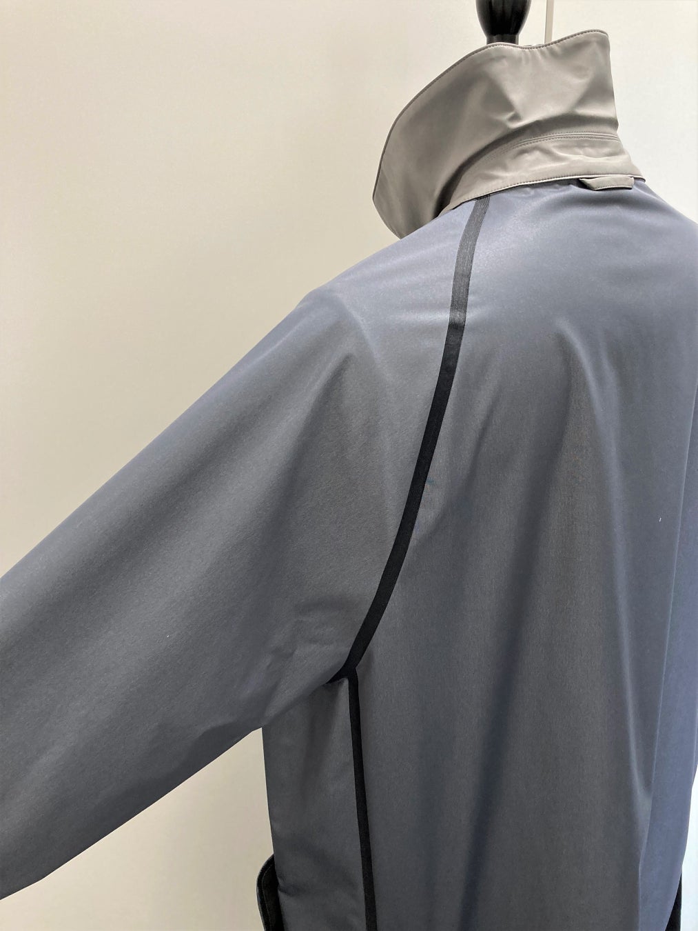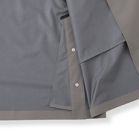 超音波溶着によって縫い代を極力省いたミニマルなコート。わき下の縫い代を無くしたことで大幅な着用感の向上を実現。春から梅雨時期まで長く着用できる1着