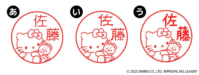 フォントはこちらの3種類。かわいらしいハローキティのイラストと相性のよい、読みやすく親しみやすいフォントをご用意。漢字は3文字、ひらがな・カタカナは5文字、アルファベットは6文字まで入れることができます。