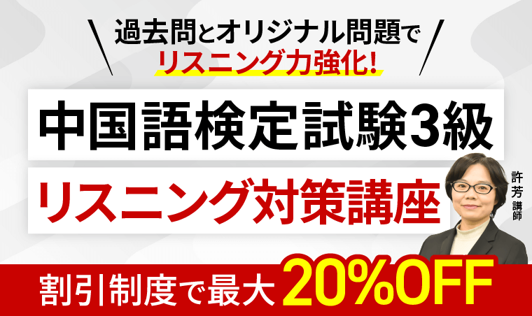 中国語検定試験(中検)3級リスニング対策講座リリース!