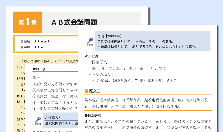 ■中国語検定試験(中検)3級リスニング対策講座の特長