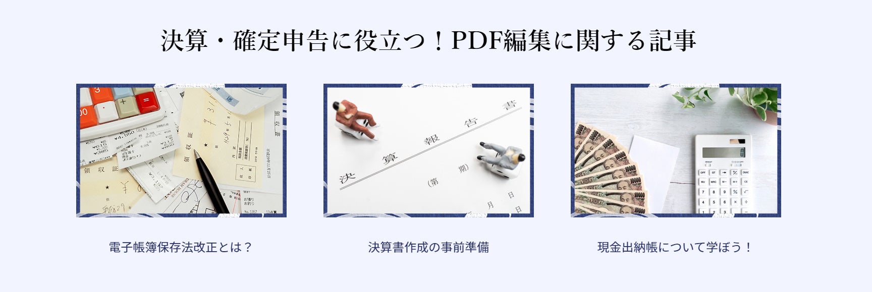 決算時期や確定申告時期には「PDFを編集」する事が多くなりますよね。領収書の整理に帳簿の整理。デジタル化して保存したいけど紙のまま進んでいない。電子帳簿保存法の改正によりPDFを処理する準備を行う。等のPDFに関する様々なお悩みを一気に解決できる「確定申告・決算応援キャンペーン」を開催致します!