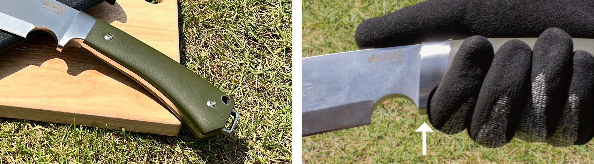 耐衝撃性や湿度変化への耐性に優れたG10ハンドルを採用。ブレード側へ手が滑らないようヒルト(ストッパー)付きで安全性にも配慮。ブレード部分の人差し指をかけられる窪み(フィンガーチョイル) のおかげで、フェザースティック作成などの細かな作業がラクラク。