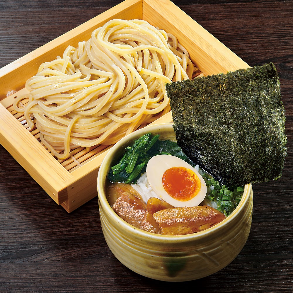 そばや麦めしと比べ、濃く極太中華麵に絡みやすく仕立てた濃厚豚骨スープが千切りとろろと相まって味わったことのない進化系つけめんに。