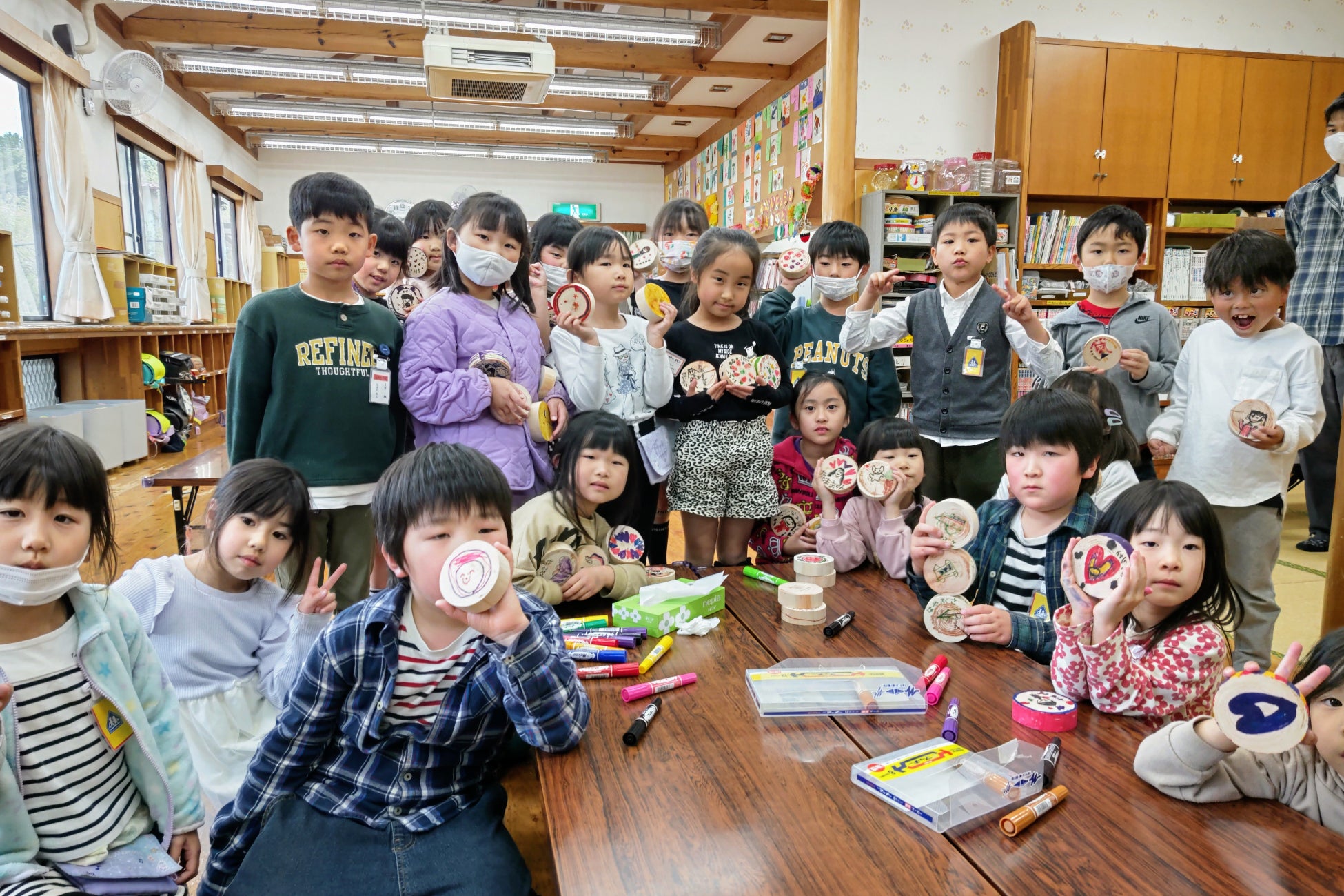 イベント開催に先がけ、2022年4月25日(火)に地元ときがわ町の学童保育 ひまわりクラブ(比企郡ときがわ町玉川)を訪問し、子供たちからのメッセージをヒノキに記入していただきました。地元の子供たちのメッセージと泉質が自慢の温泉で、⾝も⼼もほっと温まっていただきたいと思います。