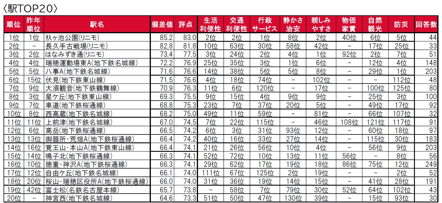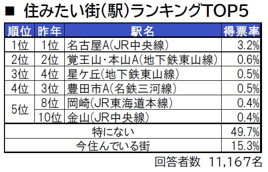 ■住みたい街(駅)トップは、2年連続で名古屋A