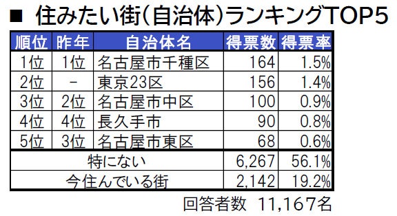 •「住みたい街(自治体)ランキング」は、愛知県居住者による全国の自治体を対象とした2022年回答を集計しました。