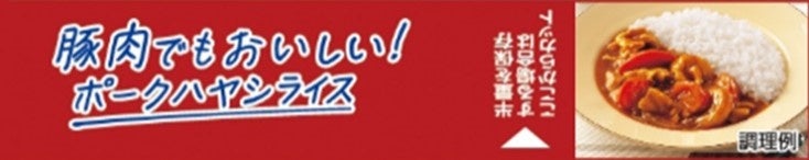 ●「豚肉でもおいしい!」ことを記載 (「完熟トマトのハヤシライスソース ボロネーゼハヤシ」のぞく)