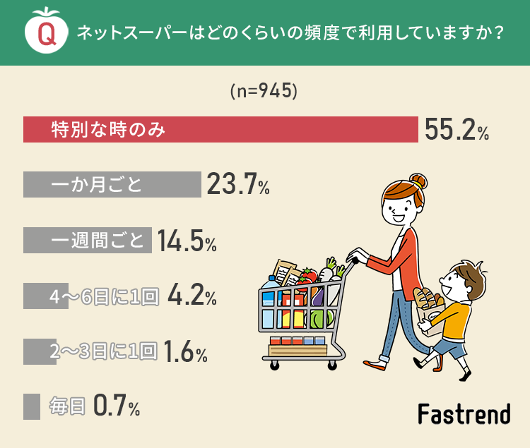 ファストレンド(運営会社:株式会社NEXER)は、「ネットスーパー」に関するアンケートを実施し、結果をサイト内にて公開したので紹介します。