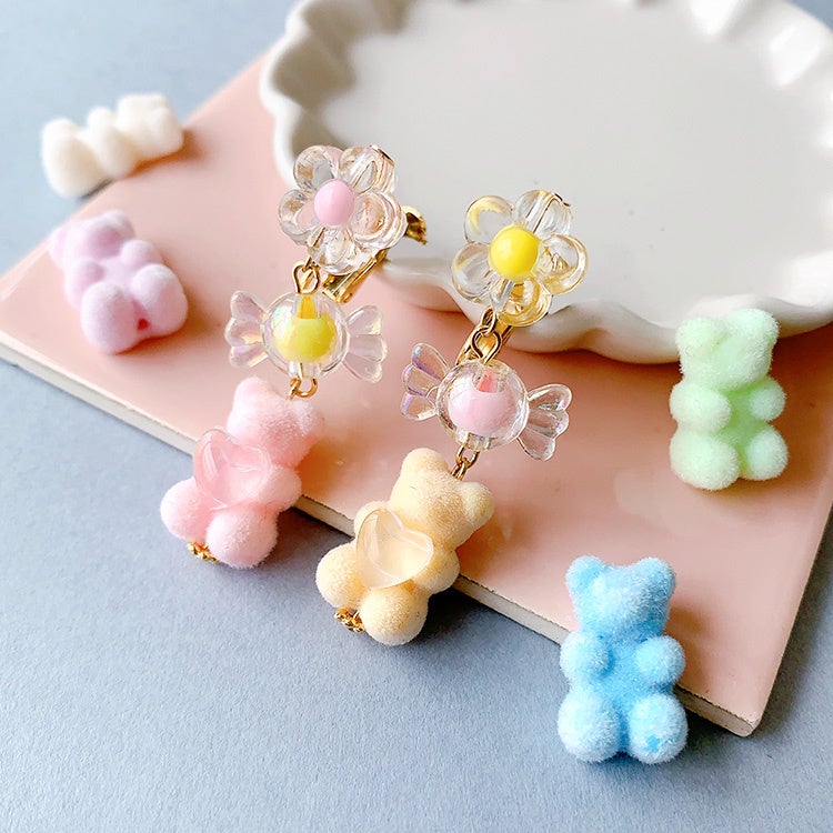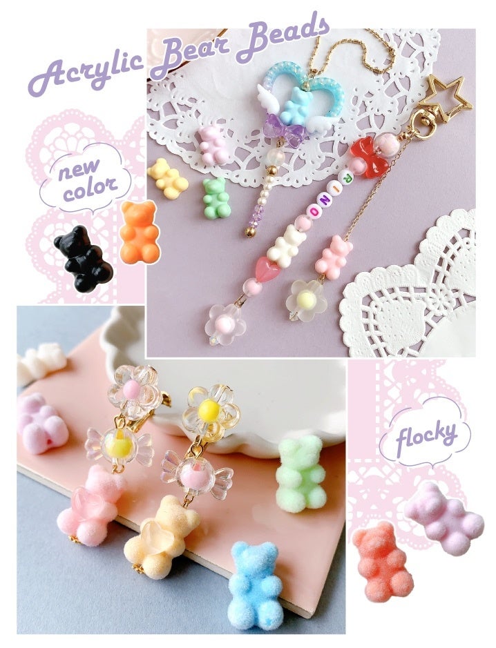 <プラスチックパーツ / アクリル ベアビーズ フロッキー(縦穴・1193) / ミックス(MA)>