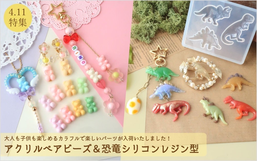 大人も子供も大喜びの想像力をかき立てる恐竜シリコンレジン型&アクリルビーズが入荷いたしました。