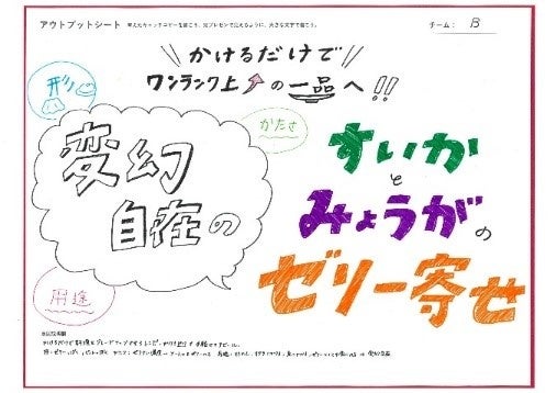 今回のワークショップで考案した6つのレシピのキャッチコピーとそこに至るディスカッション内容を元に、本プロジェクトの学生2名(小川さん、新村さん)がレシピ名をブラッシュアップし、ミツカンのメニュー開発担当者からのアドバイスも参考に、最終的なレシピ名を決定しました。これらの6つのレシピは、ミツカン公式メニューとして、ミツカンの HP「おうちレシピ」ページに掲載されています。https://www.mizkan.co.jp/ouchirecipe/