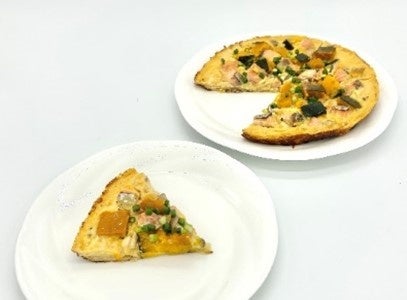 「本来のキッシュはオーブンを使用して、約1時間の調理時間を要する手間のかかる料理ですが、このレシピは、フライパンを使って簡単に作れます。具材には、秋の味覚である秋鮭、南瓜、しめじ、じゃがいも、調味料には味ぽん®を使用し、日本らしい素材の味を活かした味わいに仕上げました。」