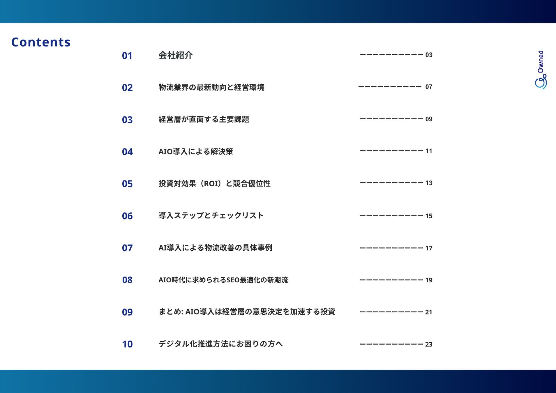 株式会社ベクトル(本社:東京都港区、代表取締役会長兼社長CEO:西江 肇司、東証プライム:6058)の子会社であるOwned株式会社(東京都品川区、代表取締役社長、石井翔、以下「当社」)は、「物流業界のデジタル変革 ― 紙媒体削減とAIO導入でROIを最大化する方法」2025年10月版(全27ページ)を無料公開いたしました。