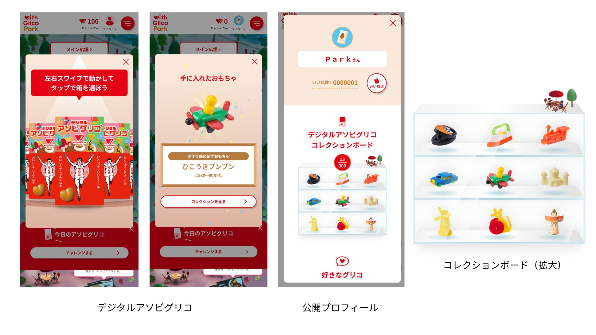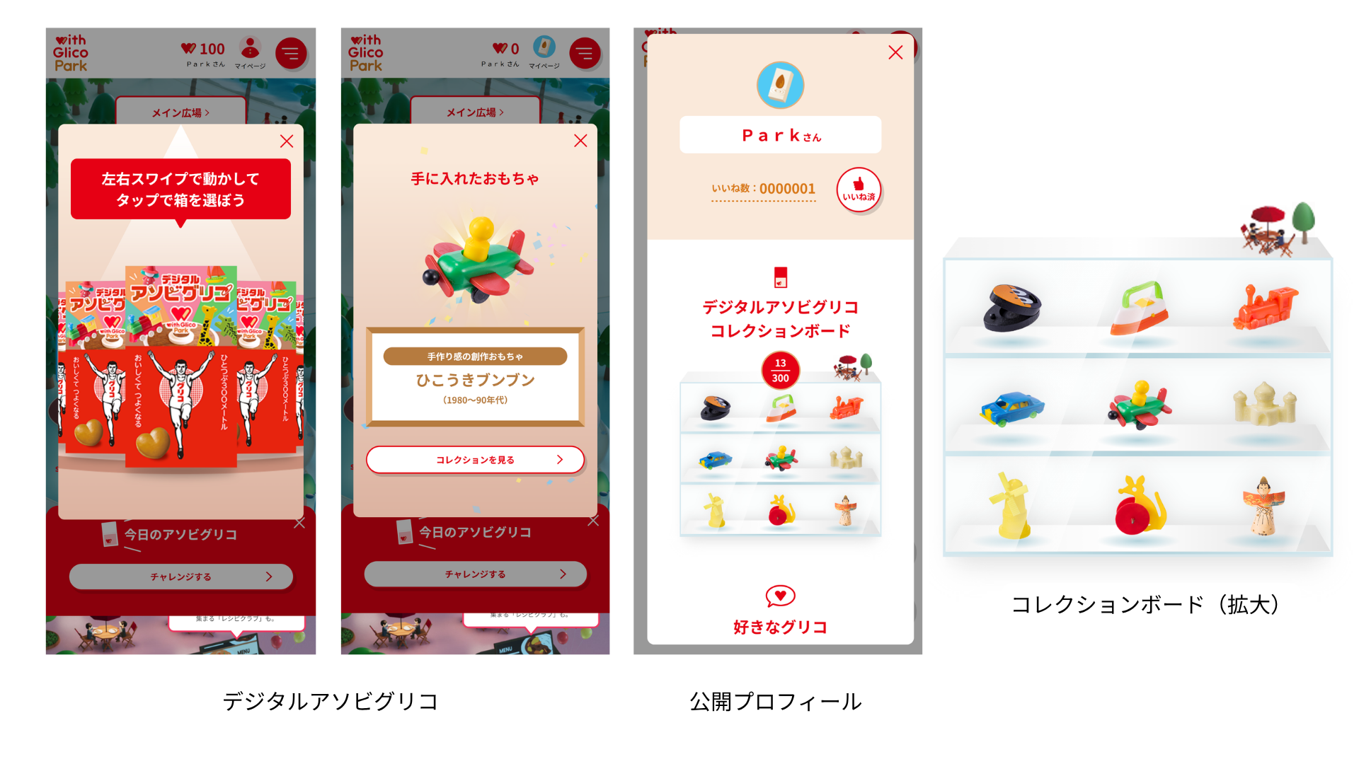 デジタルアソビグリコ:with Glico Parkユーザー限定のコレクションゲームです。1日1回無料で「アソビグリコ」等に登場するおもちゃを引くことができ、あなたのコレクションに仲間入りします。集めたおもちゃが共通の話題となり、交流が広がります。
