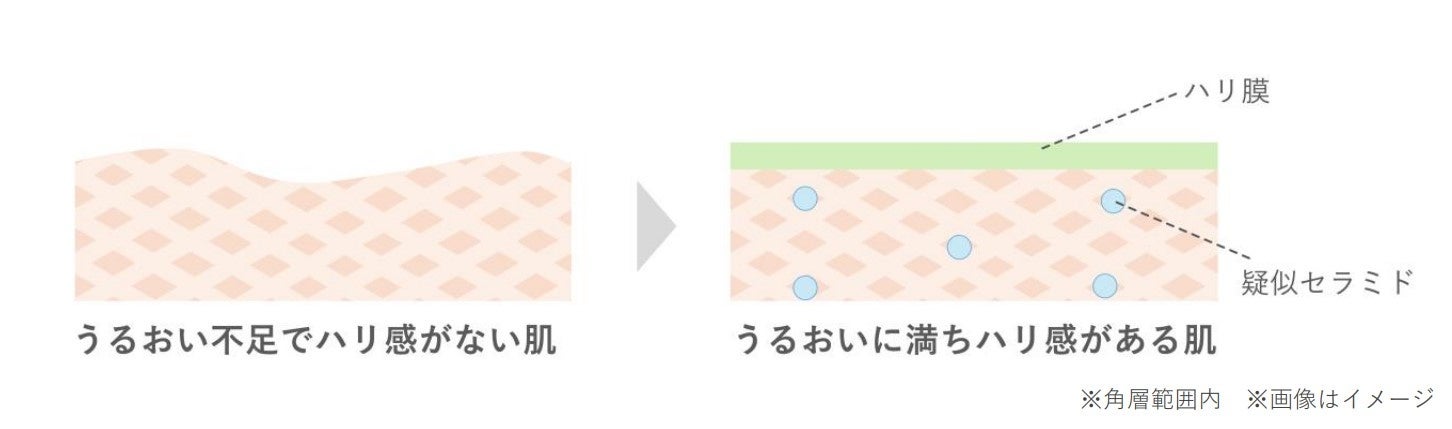 【広く】肌表面に“広く”ハリ膜をつくり、また疑似セラミドが肌を押し上げるようなハリ感のある目元に
