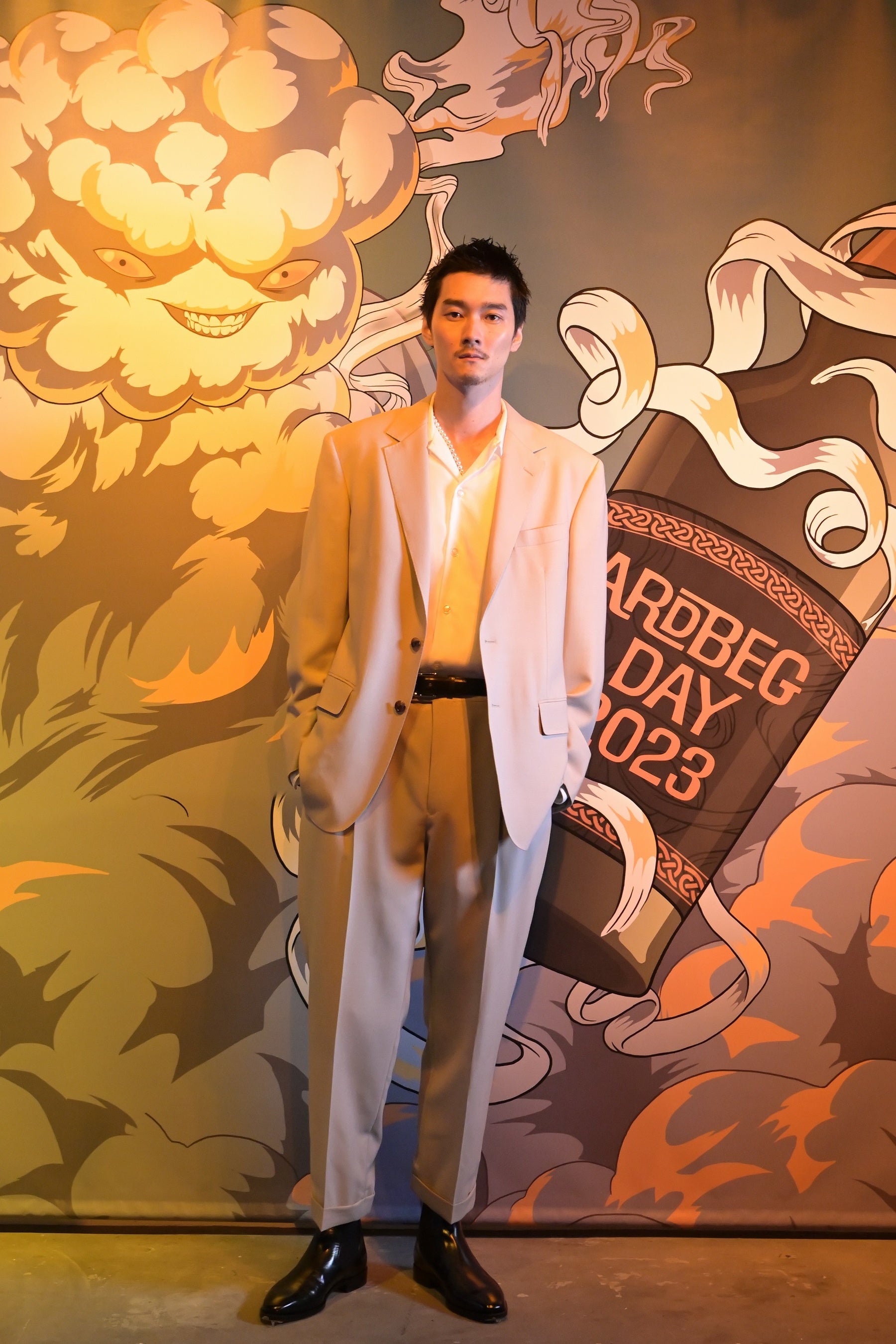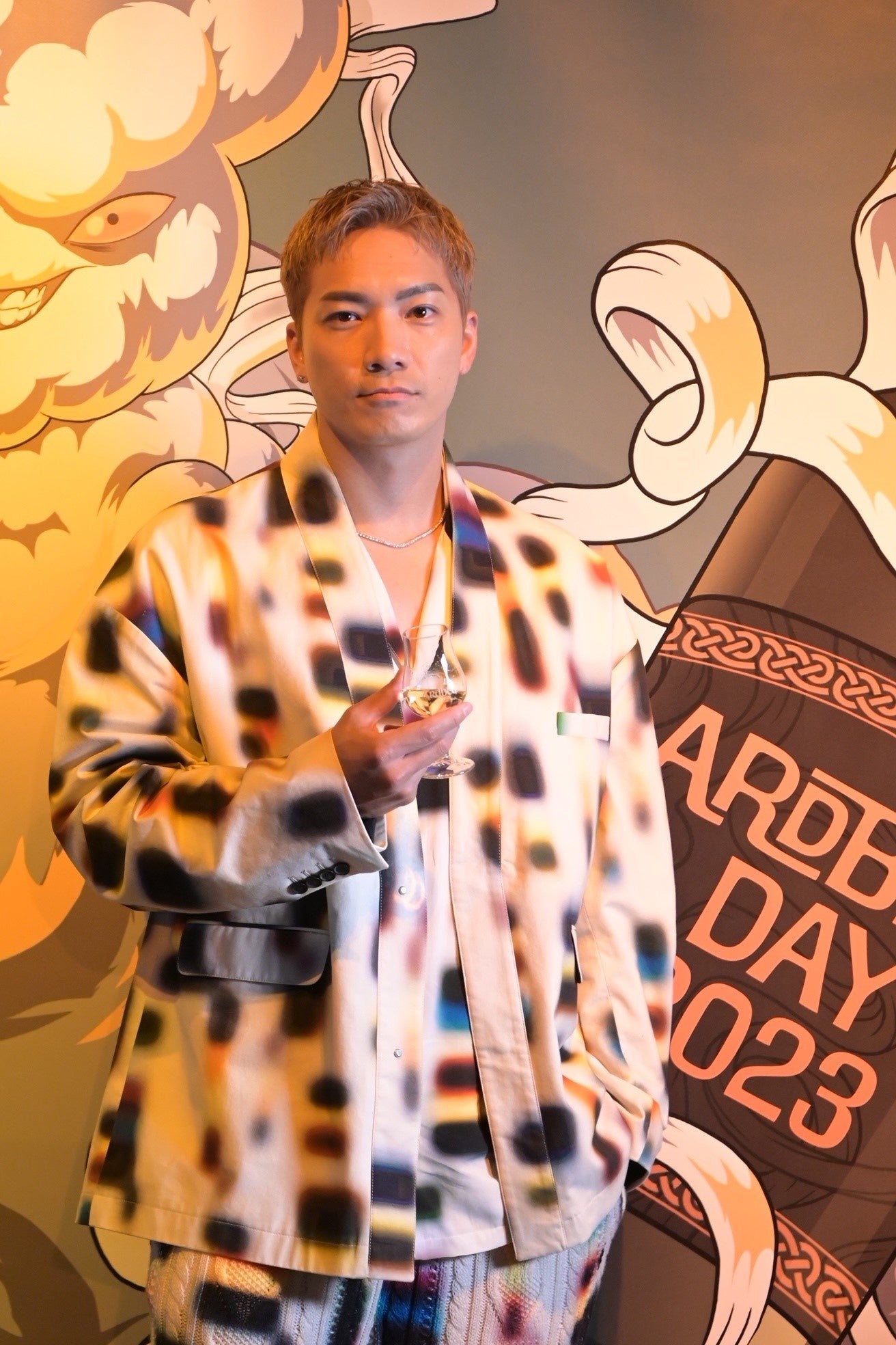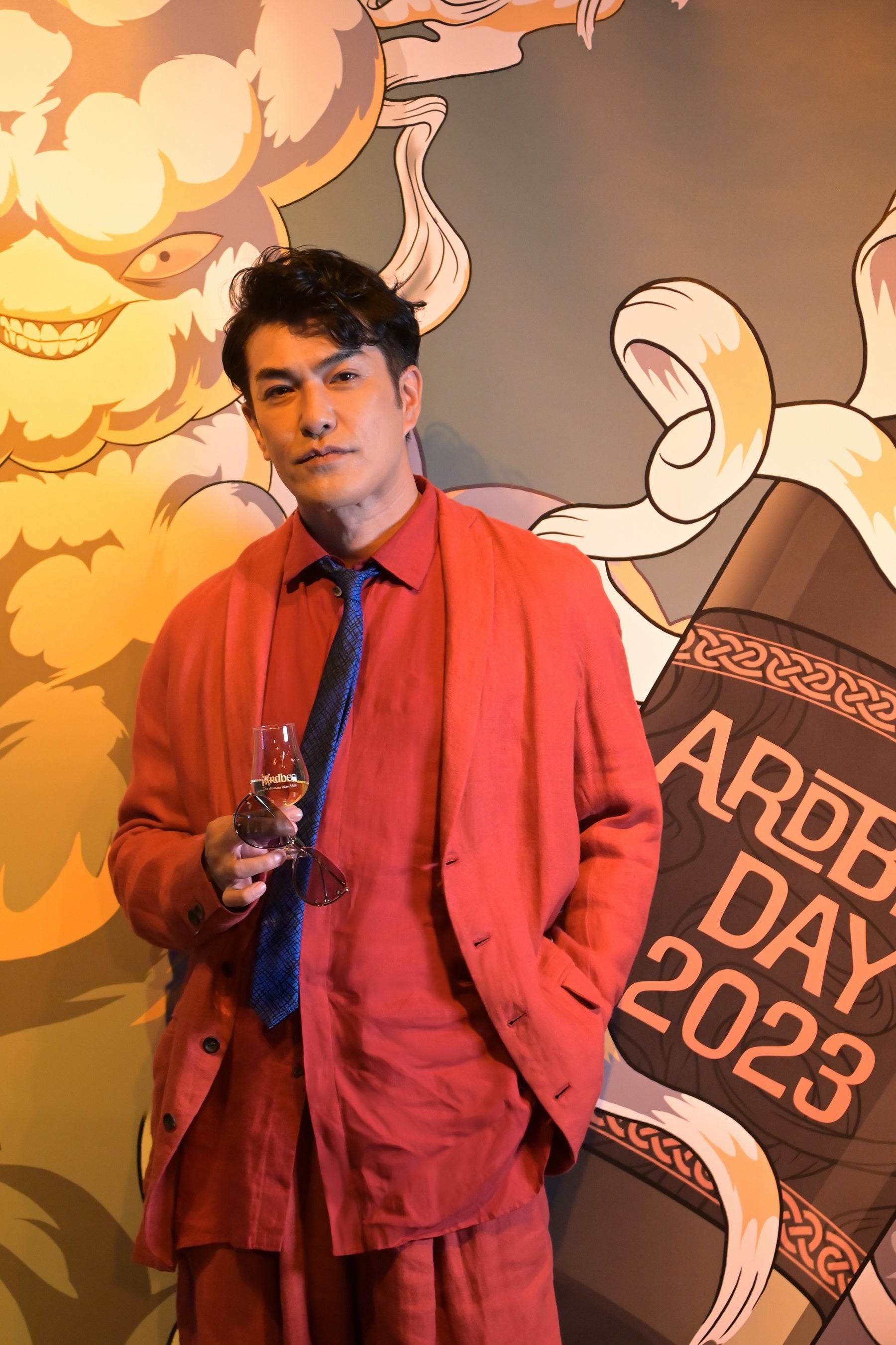 オープニングイベントでは、多くのセレブリティーもアードベッグ・デーのお祝いに駆け付けました。鮮やかな赤のセットアップで登場した北村一輝さんは、「自宅には常にアードベッグが置いてあり、気分によって飲み方を変えています。お気に入りの飲み方は、ソーダとアイスを入れたグラスに上からアードベッグを垂らして混ぜないで飲む割り方です。そうすることでアードベッグの味がよりわかりやすく、口の中で味わいが広がるような気がします。」と、自身のアードベッグの楽しみ方を語りました。また、柳俊太郎さんも、自宅には常にアードベッグのボトルを置いていると話し、「アードベッグは上品なお酒のイメージなので、家ではロックでチビチビと、香りを楽しみながら味わっています。アードベッグ 10年は特に鼻から抜ける香りが柔らかいですよね。よくチョコレートと合わせながら楽しんでいます。」とアードベッグへの愛を語りました。また、今年の限定ボトル「アードベッグ ヘビー・ヴェーパー」を試飲したSWAYさんは、「スモーキーさと鼻から抜ける香りがとても気に入りました。甘い余韻が長く続きますね。」と感想を述べました。