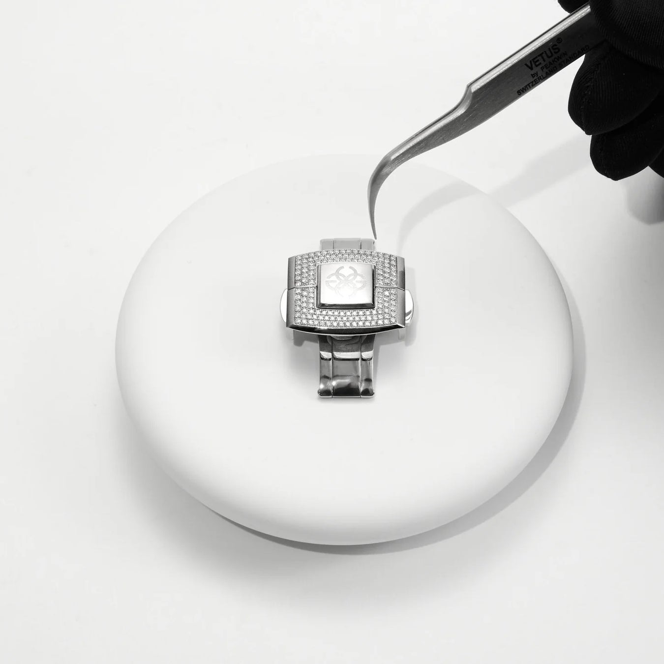 さらに、ケースに加え、特別仕様のバタフライバックルには138個のVVSダイヤモンドがセットされています。