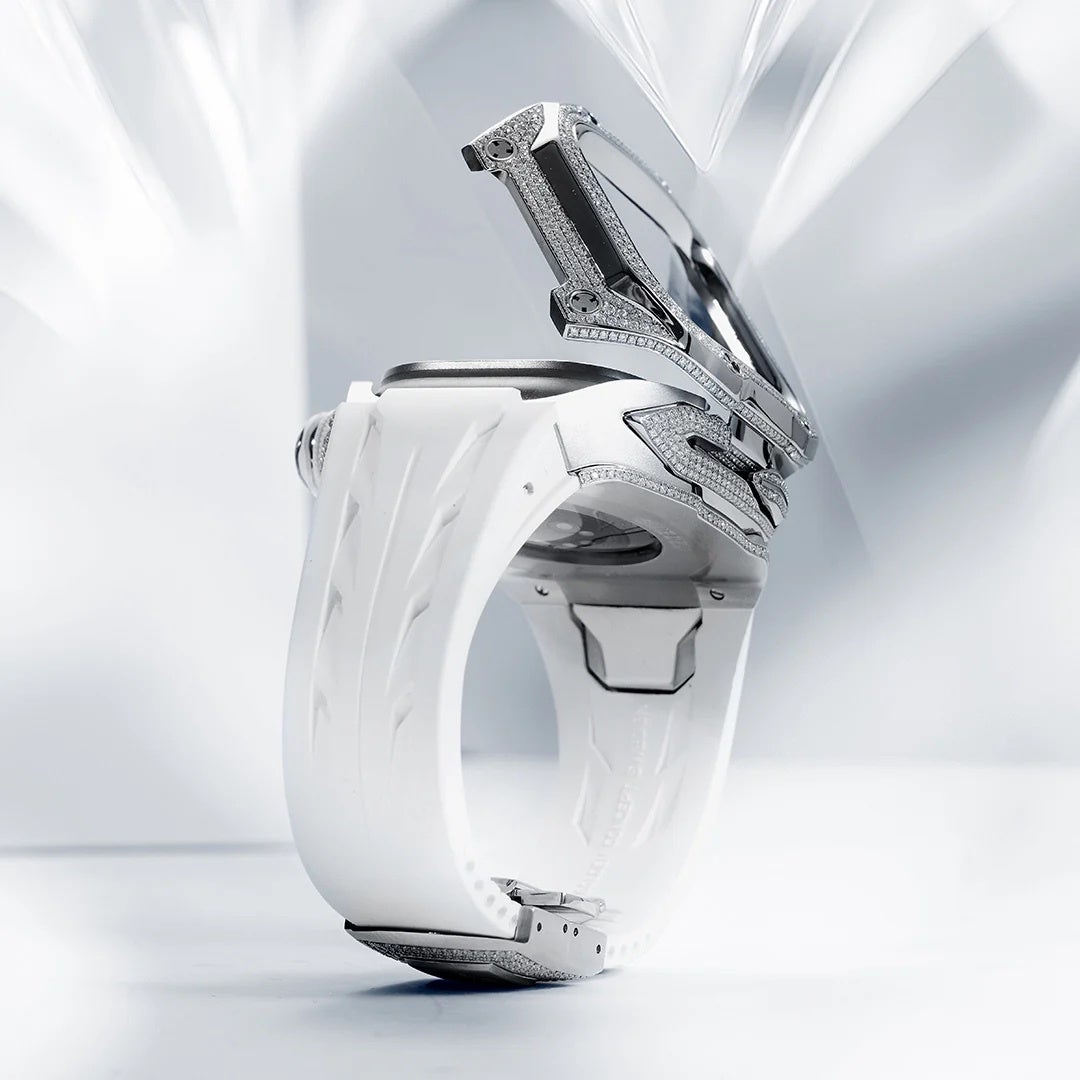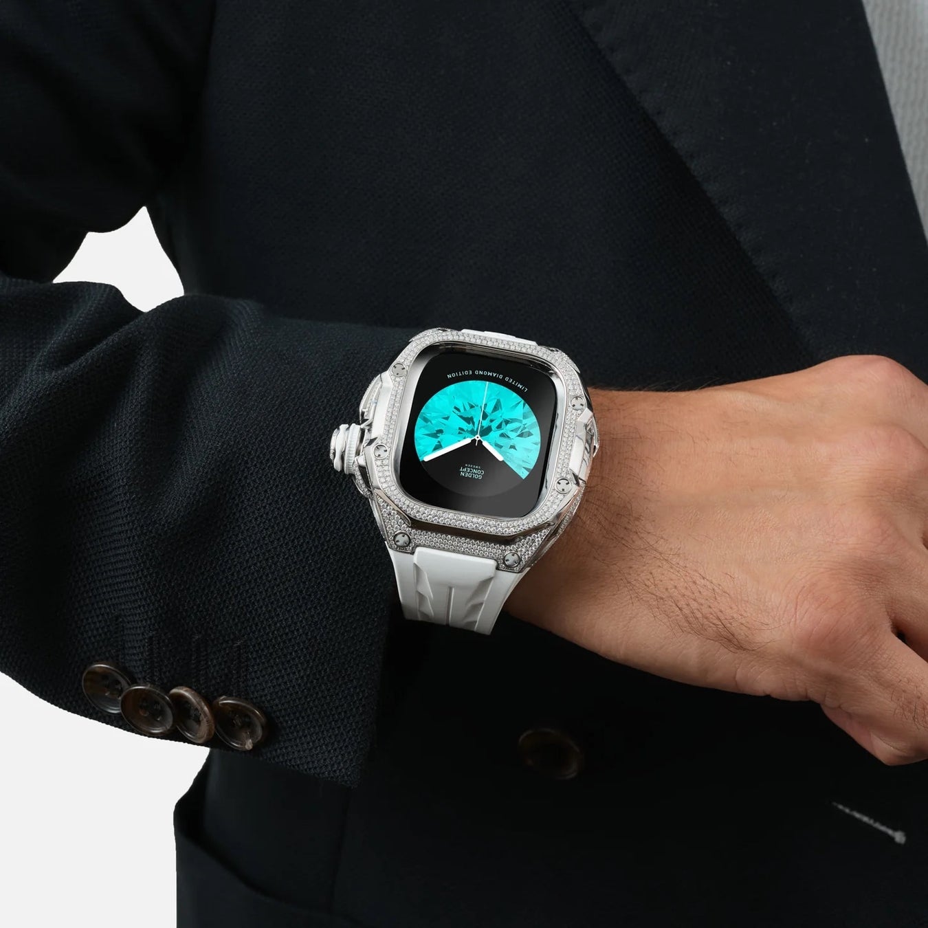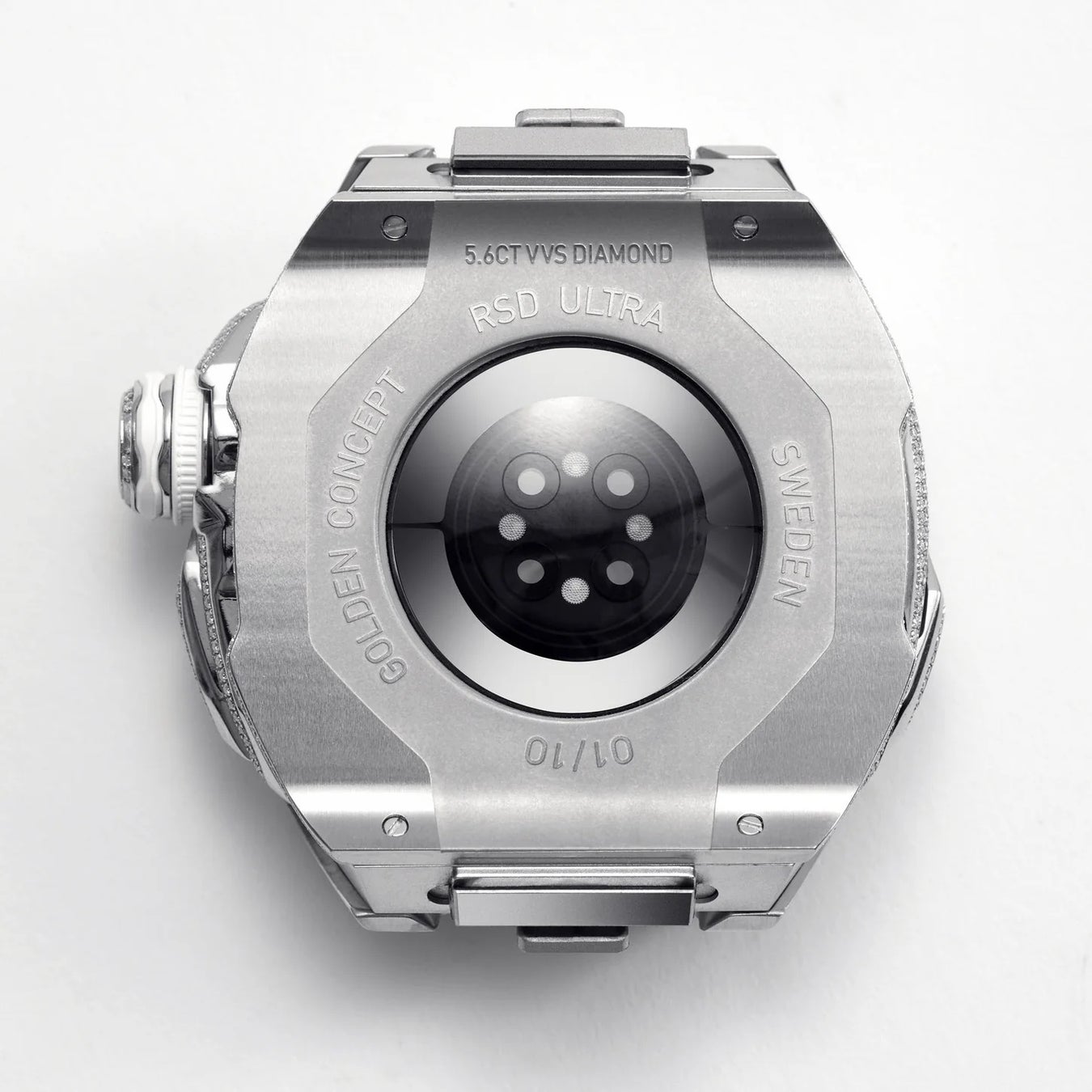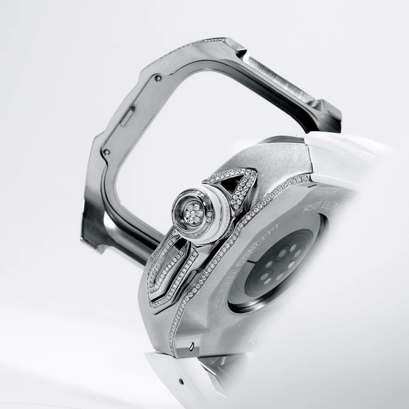 高級アップルウォッチケースブランド「ゴールデンコンセプトが創立10周年を迎え、それを記念した特別モデル「RSTⅢ49 - DIAMOND」が登場。1,068個におよぶVVSダイヤモンド、合計5.6カラットを贅沢に使用した極上の仕上がりとなっています。