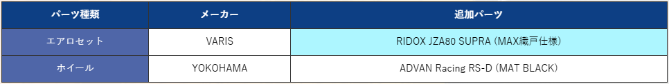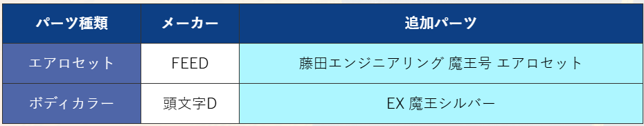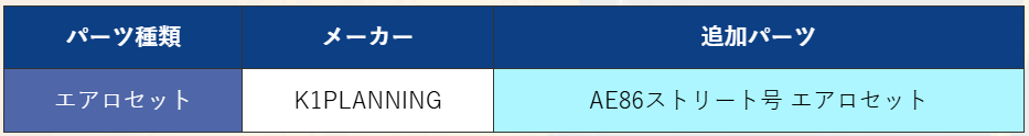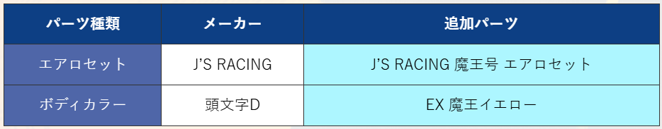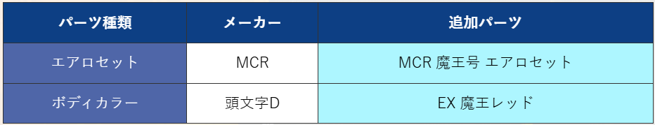 ※表で水色のマスに記載されているエアロセットは、コラボ期間のみ購入可能です。