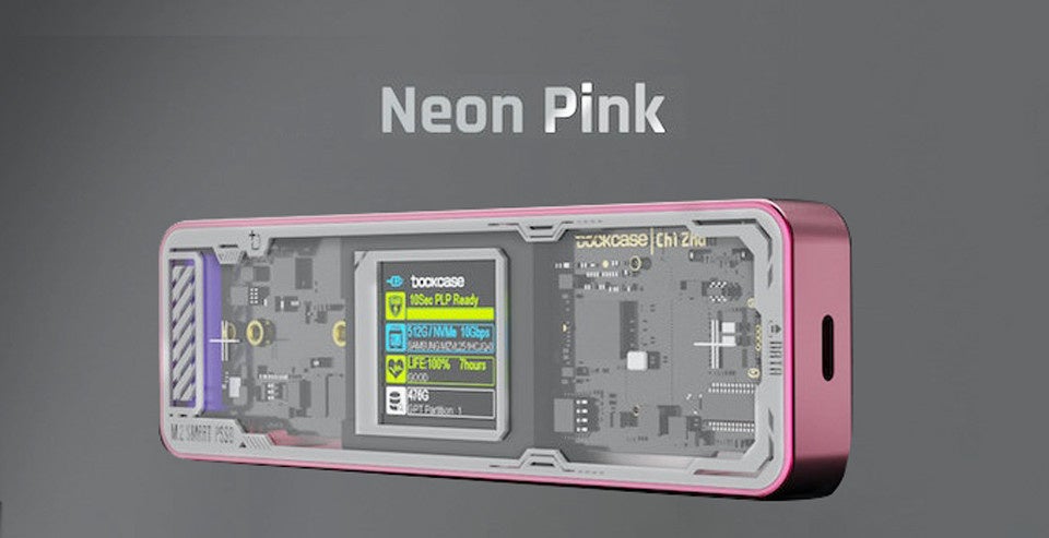 前作であるDOCKCASE10sのスペック(2TB容量)を希望する方に向けて、スケルトンデザインのネオンピンクをご用意しました。