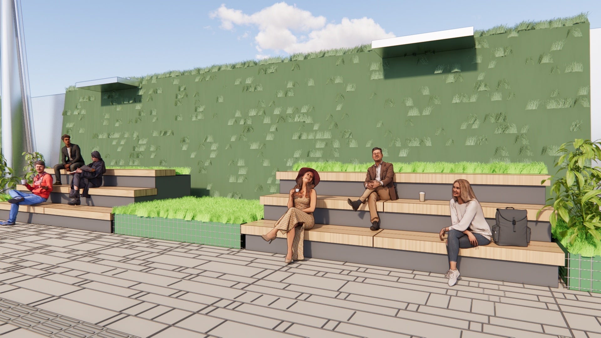 ・15種類以上のベンチやカウンター、緑化プランターを組み合わせ、一部可動式とすることで様々なイベントにも対応した空間配置が可能となり、利用されるお客さまのニーズに応じて変化できるフレキシビリティある空間を提供します。