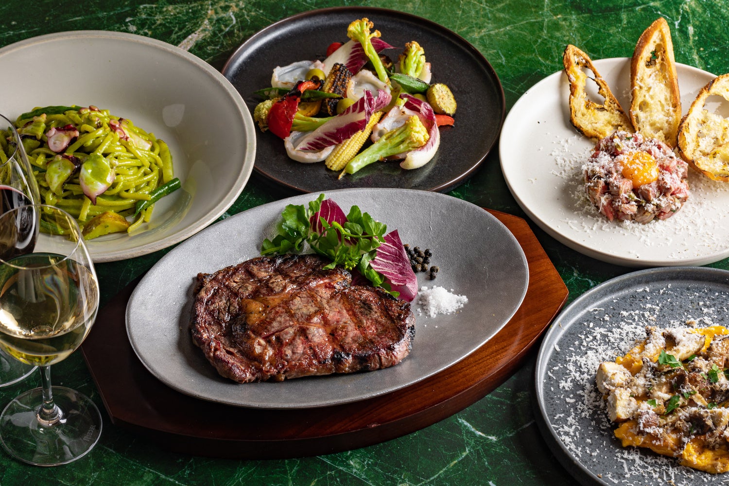 クラシックなイタリアンをベースに、イタリアや世界、そして日本各地から届く厳選した素材を最高の状態でご提供します。お野菜や魚介に薫香をつけて、ピザやパスタにトッピングや、お肉はじっくり火を入れることで、中はジューシーに外はパリッと仕上がります。薪炭料理の新たな可能性を秘めた、今までにないレストランです。
