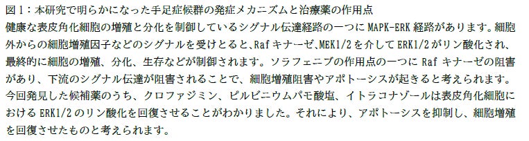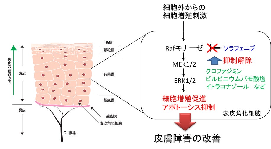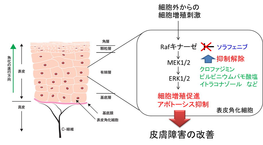 いくつかの既存薬がソラフェニブによる表皮細胞障害を抑制することを発見