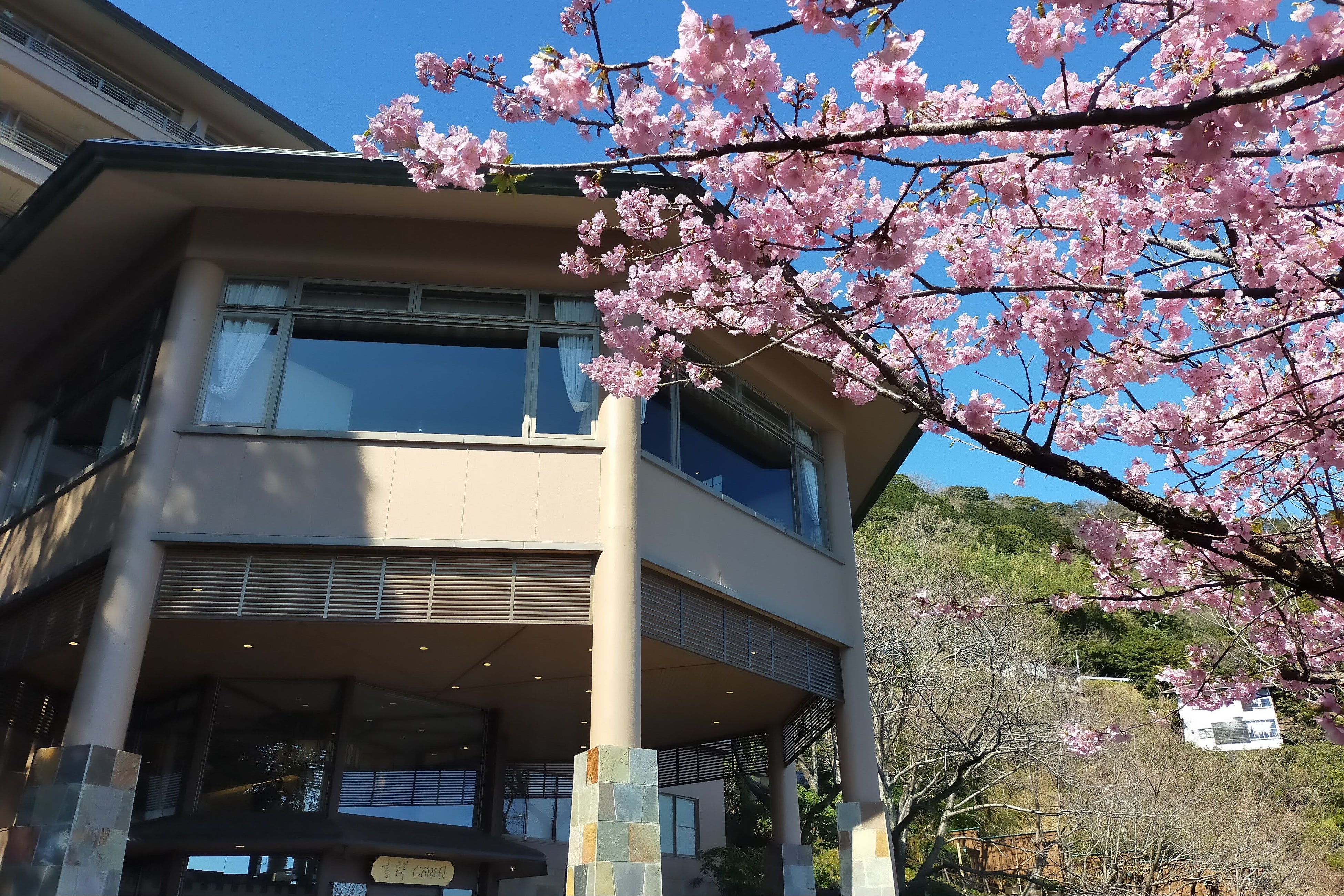 - 2月上旬 ~ 河津桜/エントランス、露天風呂「碧海」