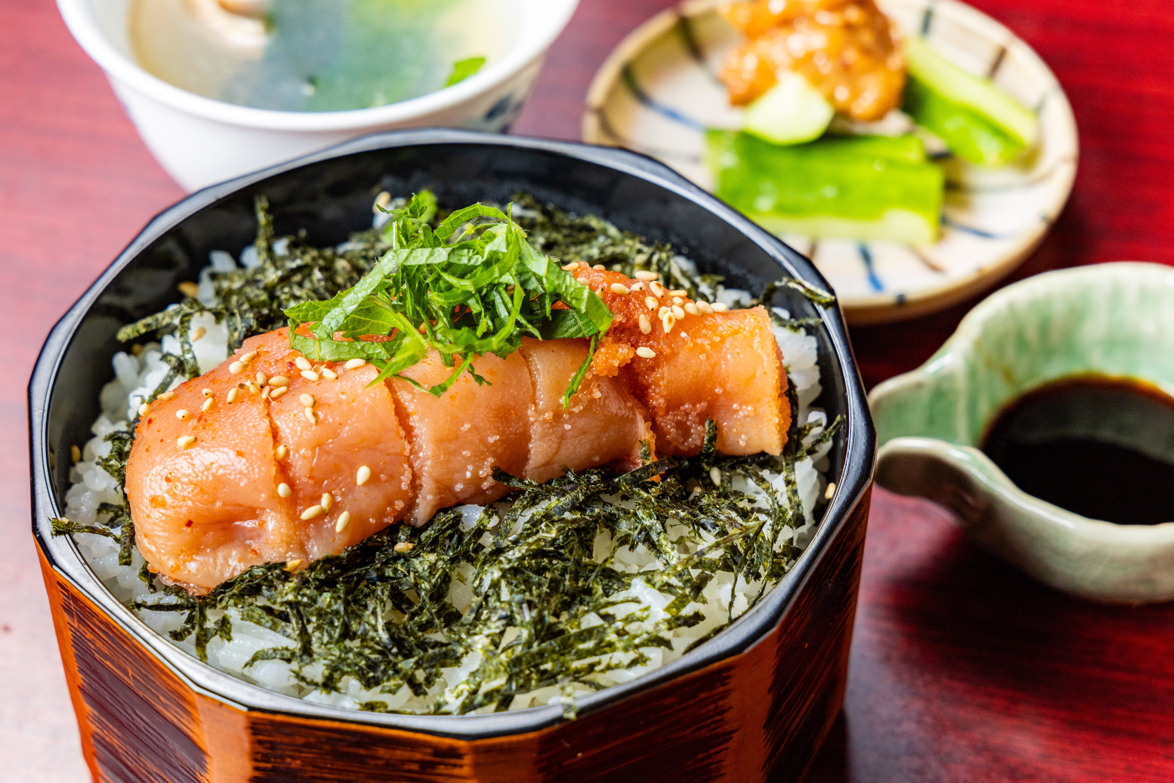 「カツオ」「昆布」「いりこ」がベースのオリジナルの低温で丁寧に抽出した一番出汁と鯛出汁の2種類を使用。繊細かつ奥深い出汁の味わいが「餅もんじゃ」を通して口の中に広がります。