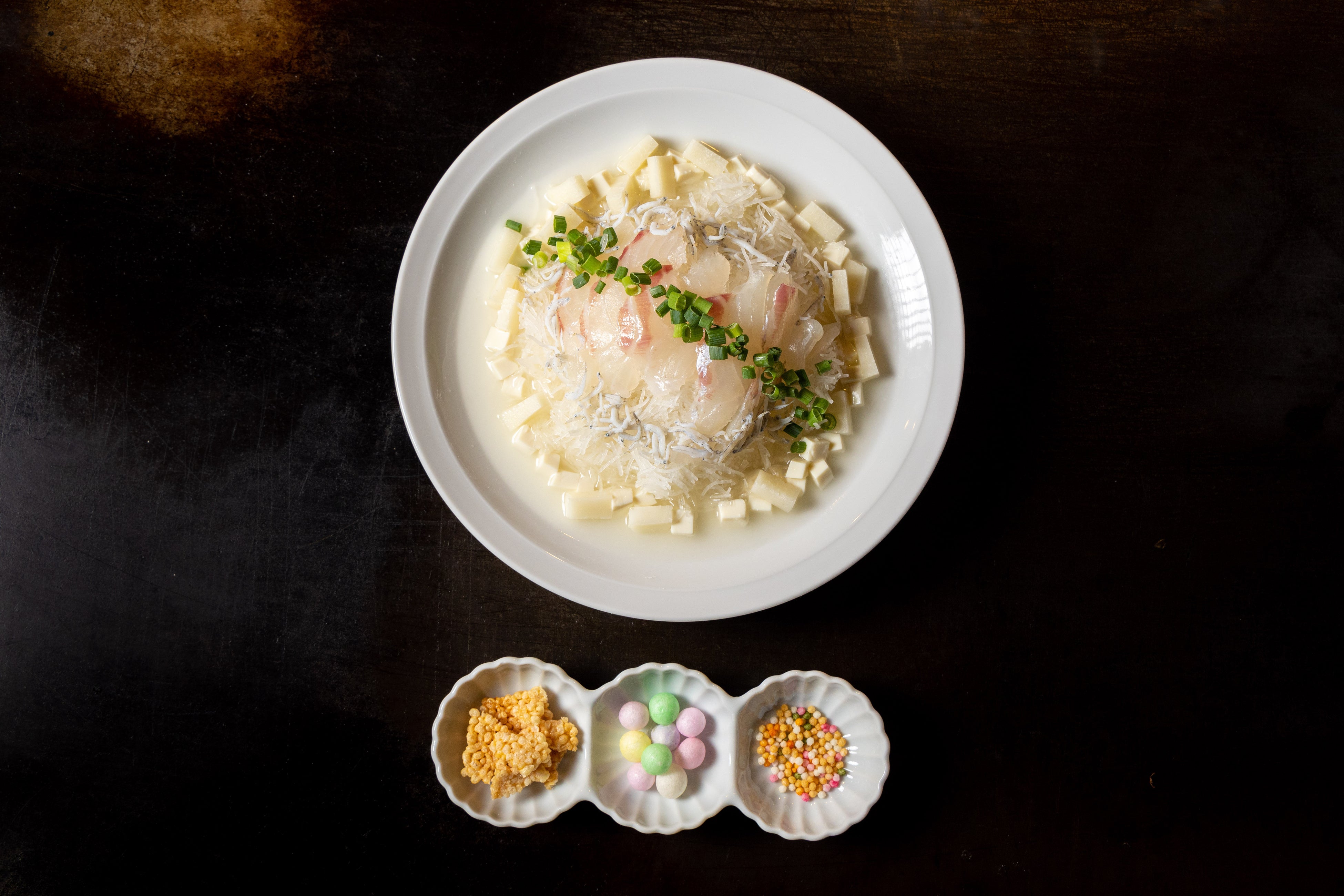 ごはくとは、五つの淡白な素材「白米・豆腐・大根・鯛・白魚」の「繊細さ、奥行き、香り、食感、本来の味」を感じる江戸時代から粋な食通の「五感」という意