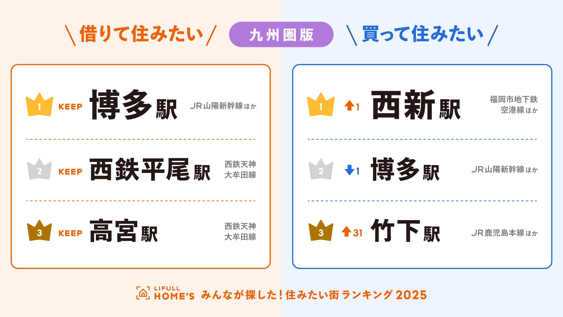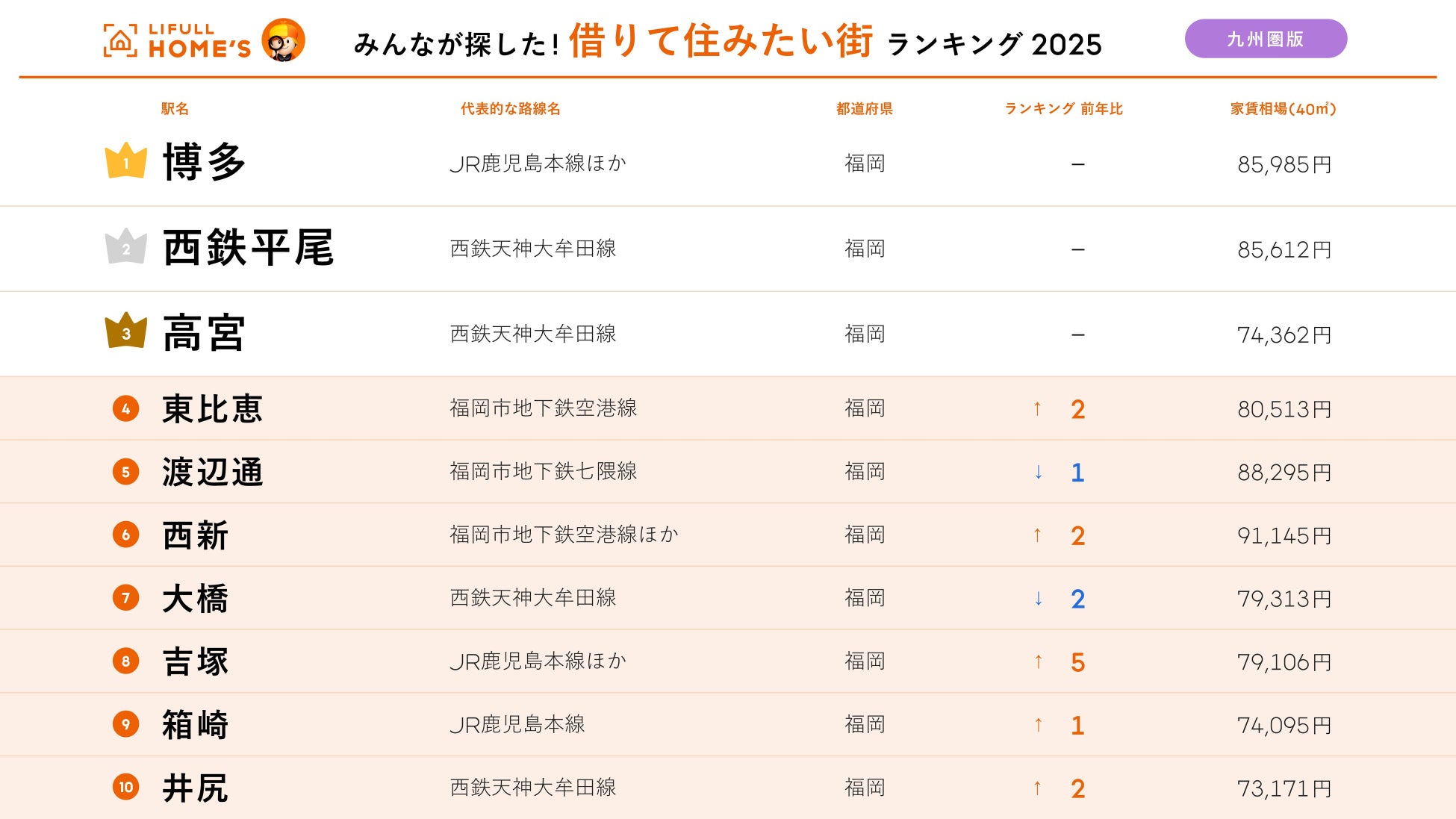 <九州圏版>2025年 LIFULL HOME'S みんなが探した!住みたい街ランキング