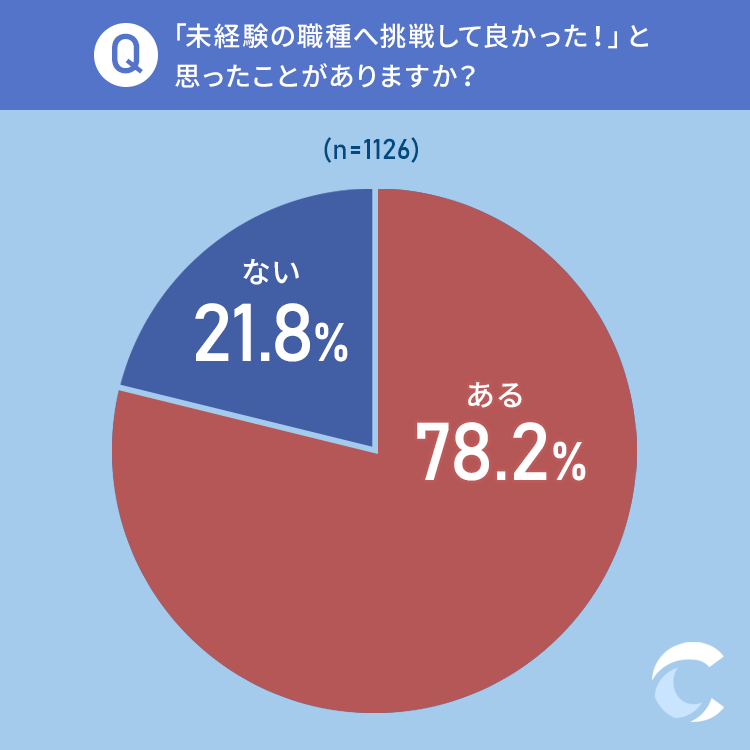 78.2%が「ある」と回答し、8割近い方が未経験の職種へ挑戦して良かったと感じているようです。