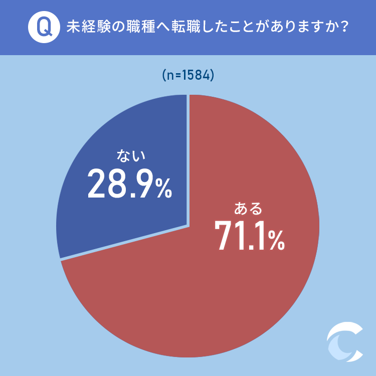 ■71.1%が、未経験の職種へ転職したことが「ある」