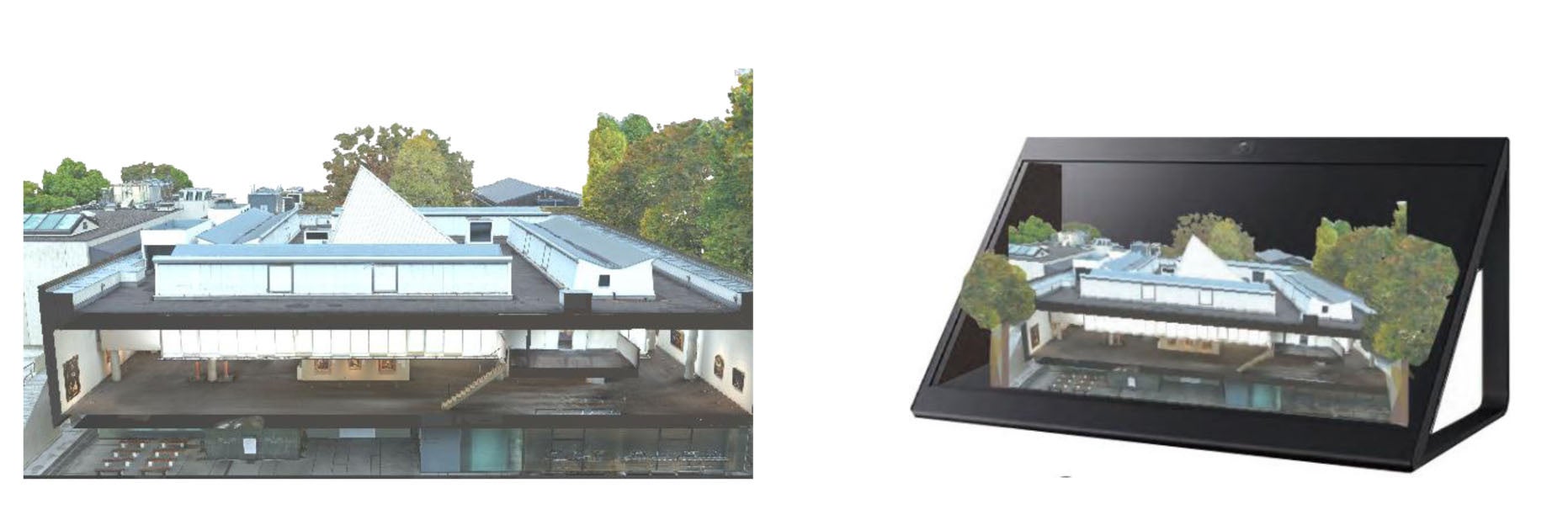 裸眼で見られる空間再現ディスプレイ上で、実在感のある3Dモデルを没入感や立体感とともに鑑賞することができます。コントローラーを使って、本館の断面や19世紀ホール、3階の旧館長室や中3階照明ギャラリーの室内を左右上下に移動したり、水平・垂直方向の断面など、好きな場所をご覧ください。