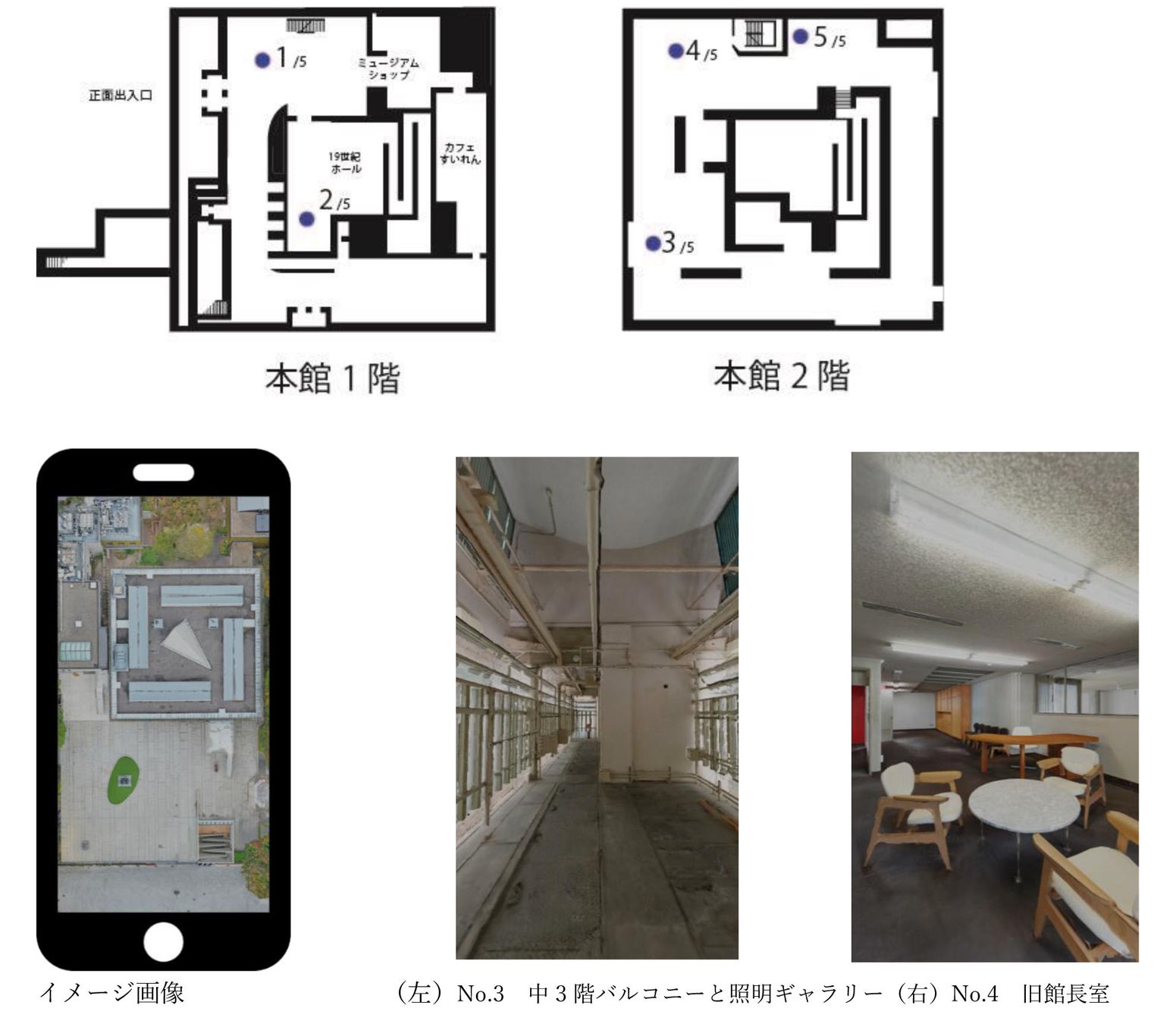 館内5カ所に設置した二次元バーコードをスマートフォンで読み込み、主に非公開ゾーンを歩くように体験できます。鳥のように上空から建物を眺めたり、通常は公開されていない照明ギャラリーをのぞき込んだり、階段を使って屋上に上がったり、…ゆびさきでめぐるデジタル建築ツアーをお楽しみください。