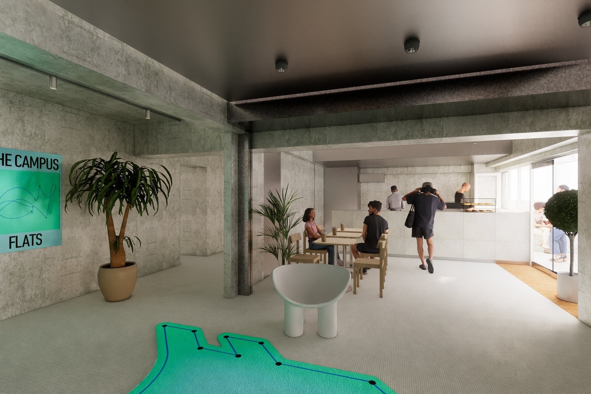 さらに施設内にはキッチンをはじめ、ランドリーブースや仕事もできる共用スペースなど、生活や仕事に欠かせない設備やスペースが準備されています。1階には入居者以外も利用可能なフードスタンドも、8月の入居開始に合わせてオープンが決定。焼きたてのピザトーストやコーヒーを中心に、様々なメニューをお楽しみいただけます。