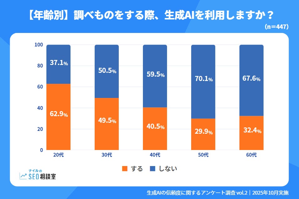 【2025年10月最新】調べものでの生成AI利用率は5割に迫る、ただ情報の信頼度は…?│生成AIの信頼度に関するアンケート調査 Vol.2
