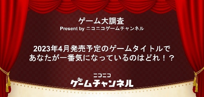 記念すべき最初のアンケートは、現在発表されている2023年4月発売予定のゲームタイトルの中から一番気になっているゲームタイトルを教えてください。下記、ニコニコアンケートページから1つ選んで投票しましょう!
