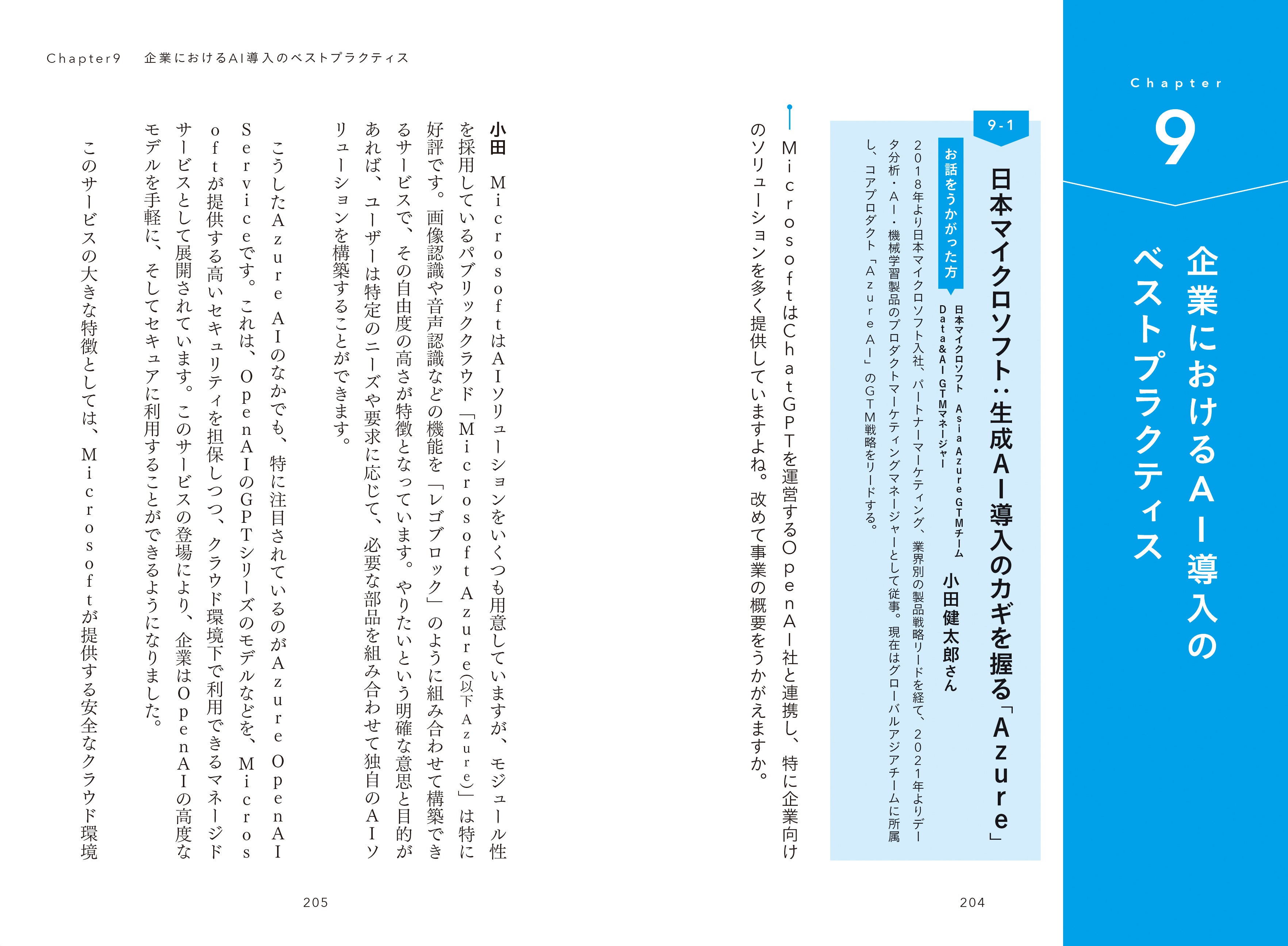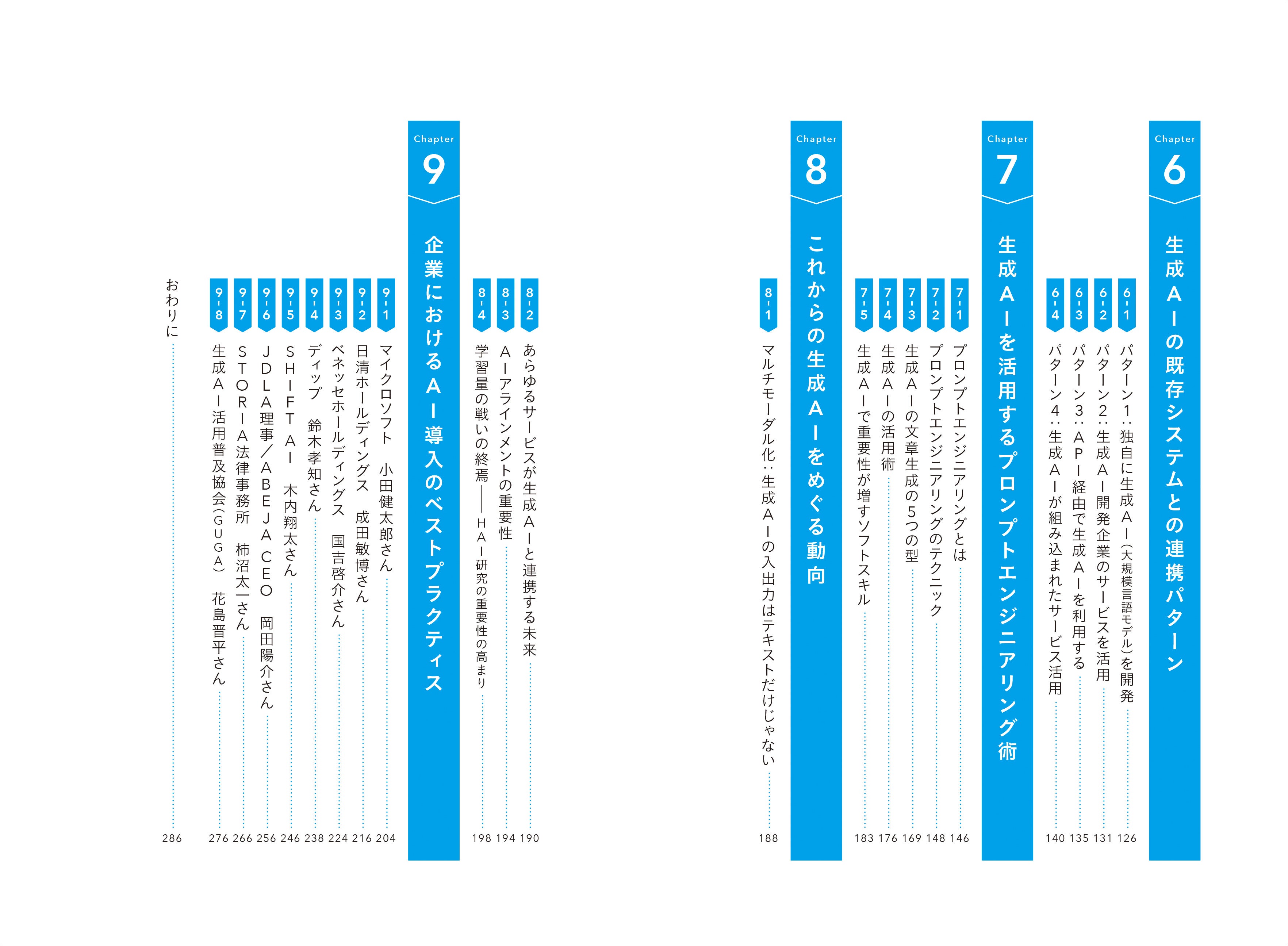 また、企業のAI導入をサポートする「マイクロソフト」や「SHIFT AI」、「ABEJA」、「STORIA法律事務所」、さらに〝生成AIの社会的実装″というミッションを掲げる生成AI活用普及協会(GUGA)といったキーマンたちにもあらゆる観点から最新事情と今後の見通しをうかがいました。