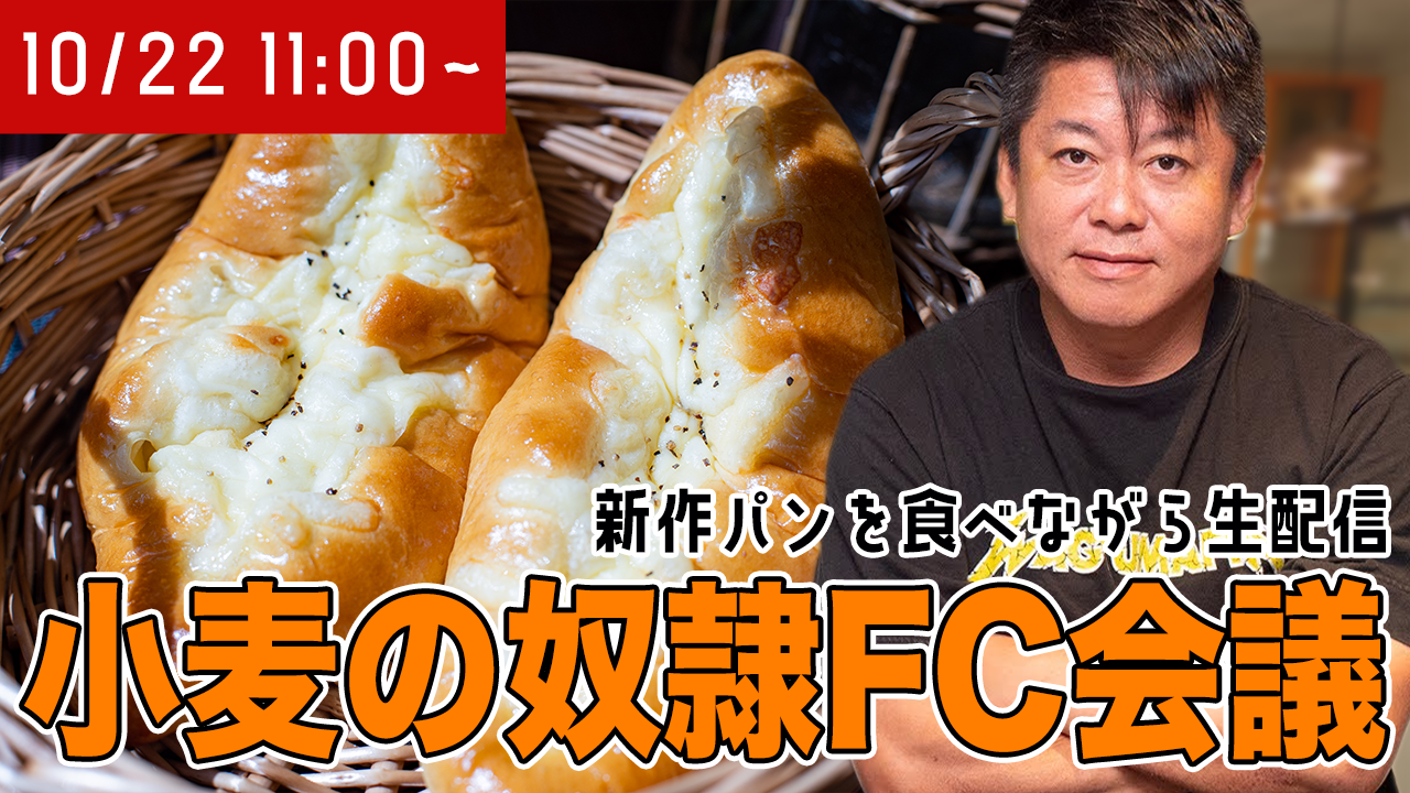 10月22日(土)に、YouTube【ホリエモンチャンネル】にて「小麦の奴隷FC会議」をライブ配信します。今回も「小麦の奴隷LABO 自由が丘店」よりお届けします。