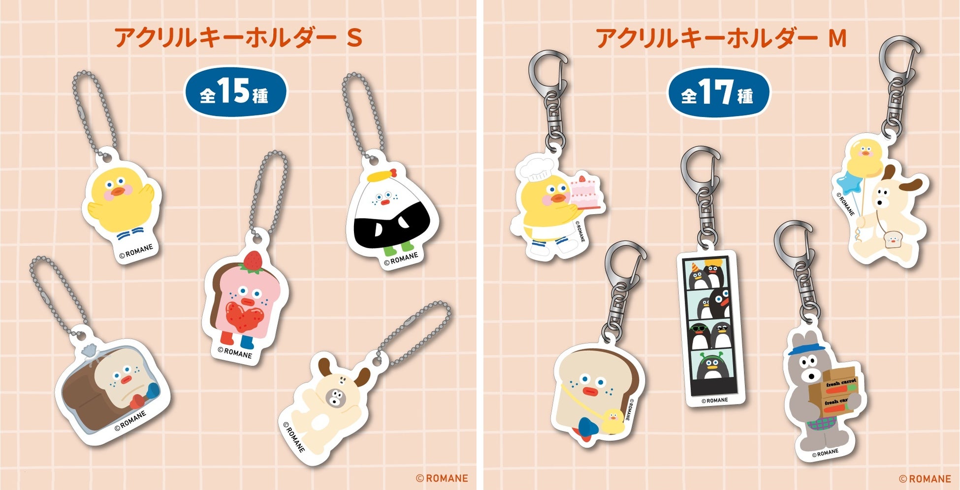 人気のトーストをはじめ、3キャラクターをぬいぐるみに。SサイズとXSサイズはボールチェーン付きでバッグやポーチに付けて持ち歩ける仕様になっています。