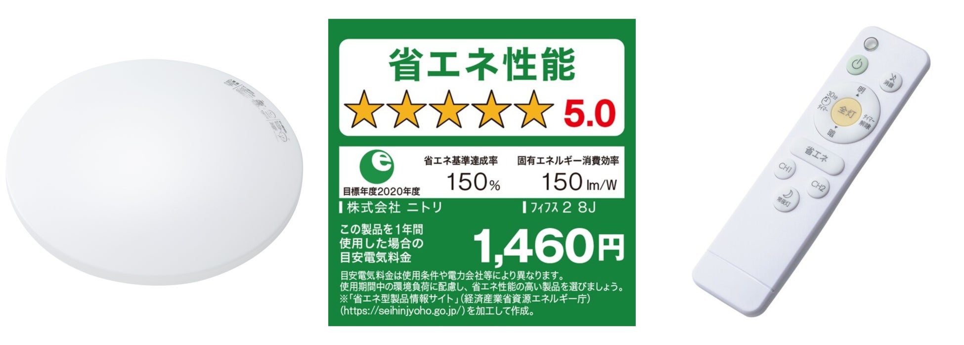 【ニトリ】エディオンと共同開発!省エネ性能に優れた(※)大好評のLEDシーリングライトをニトリ全店で取り扱い開始